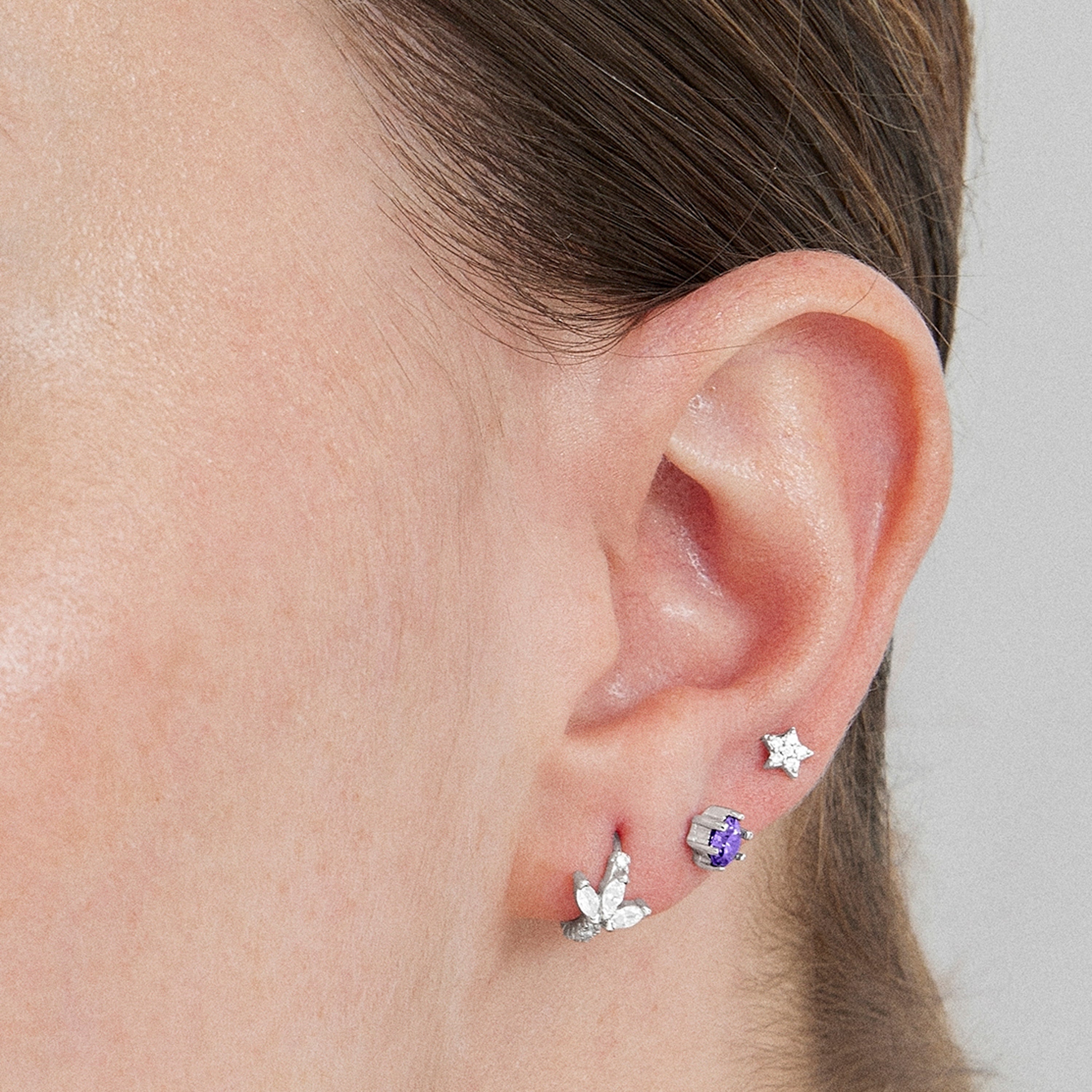 Sterling Silber 925 Piercing mit glänzendem Zirkonia rhodiniert - Netwi