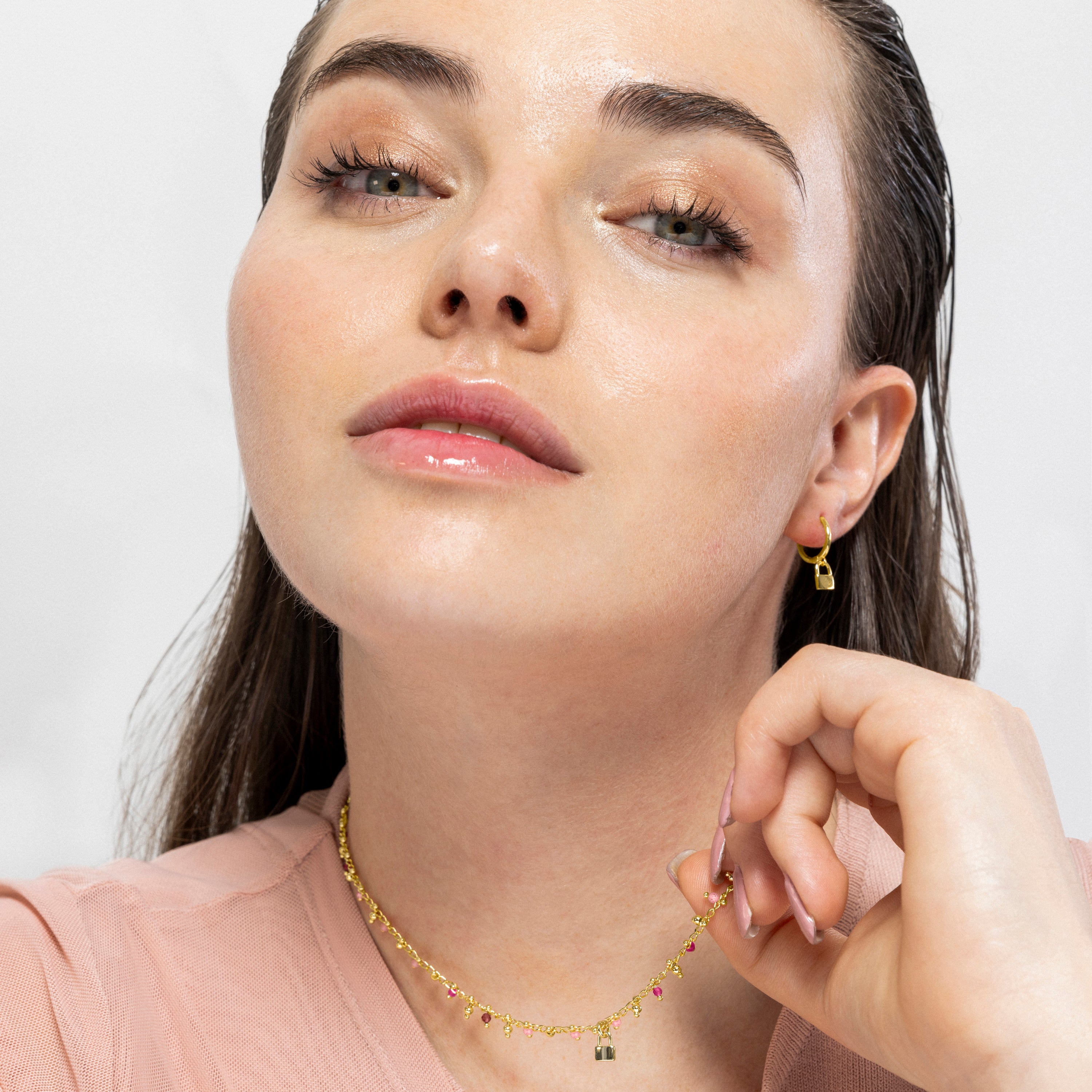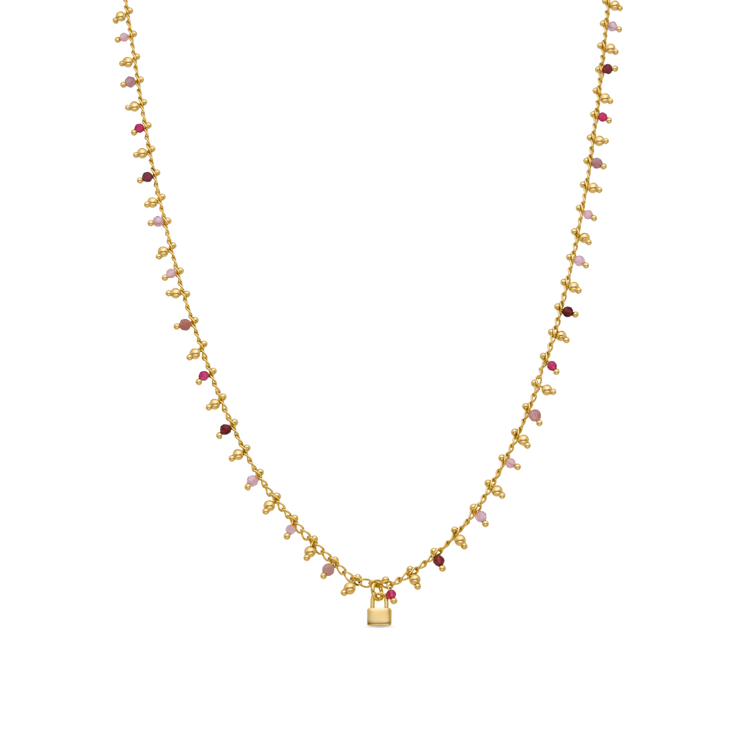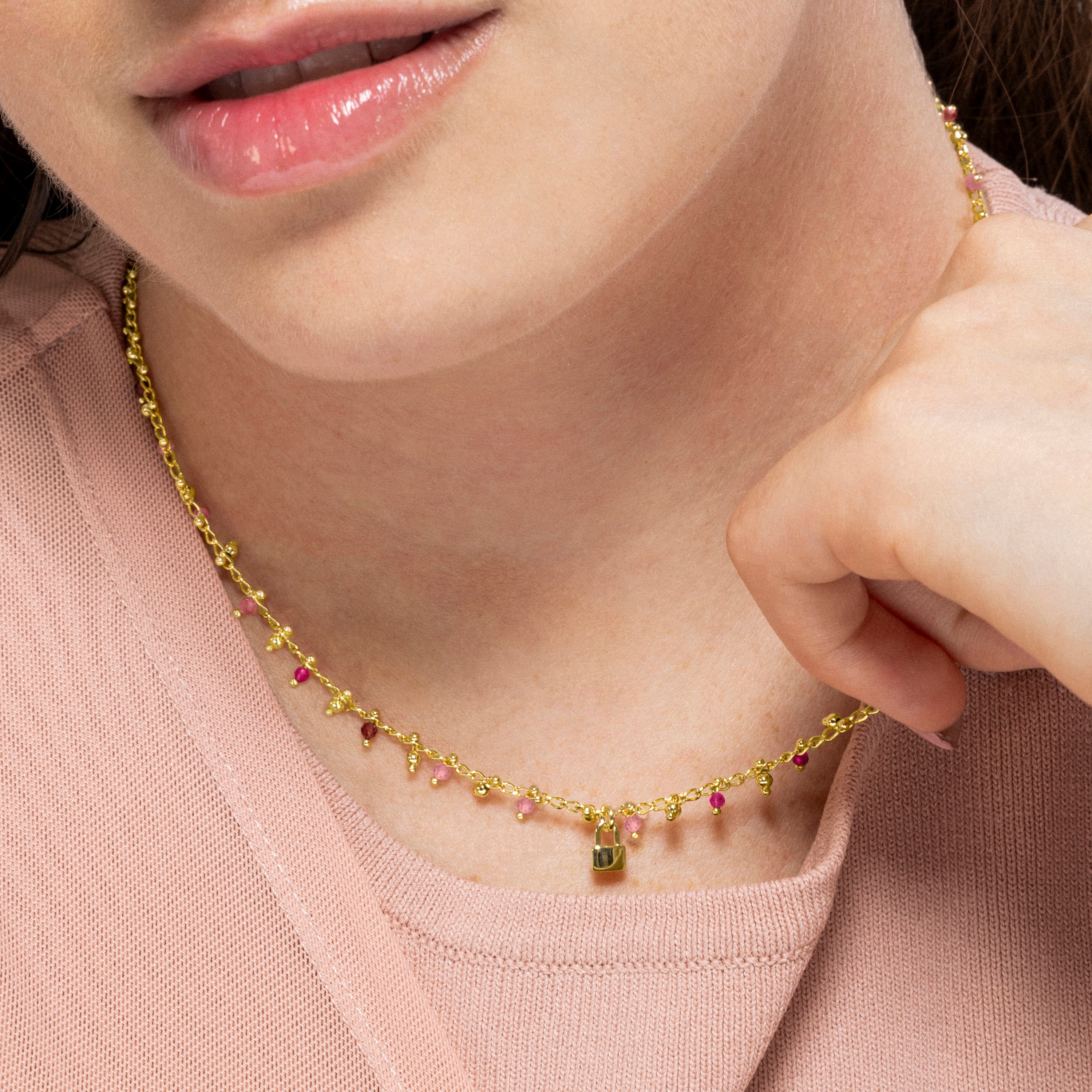 925er Silberhalskette mit rosa Kristall, vergoldet mit 18k - Schloss