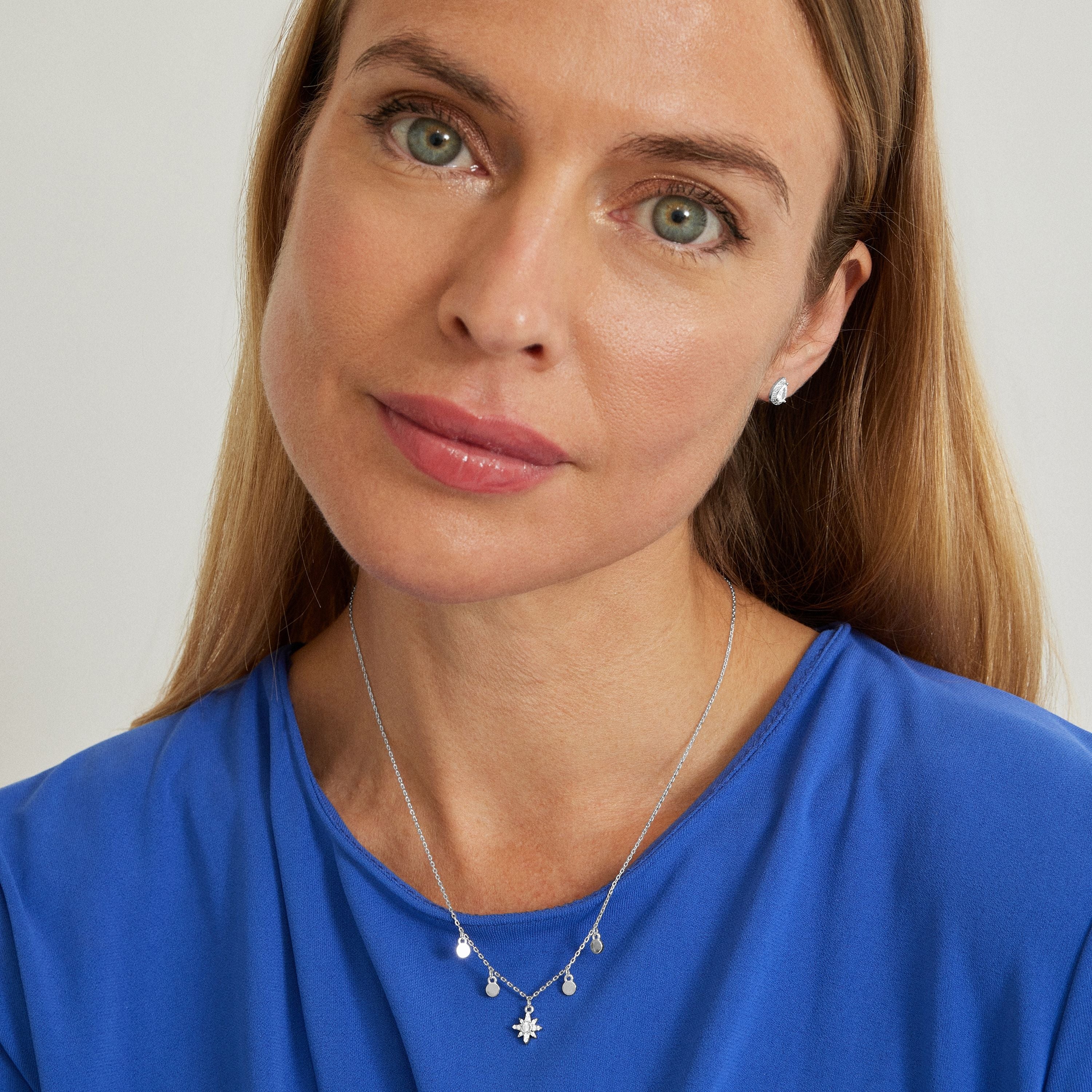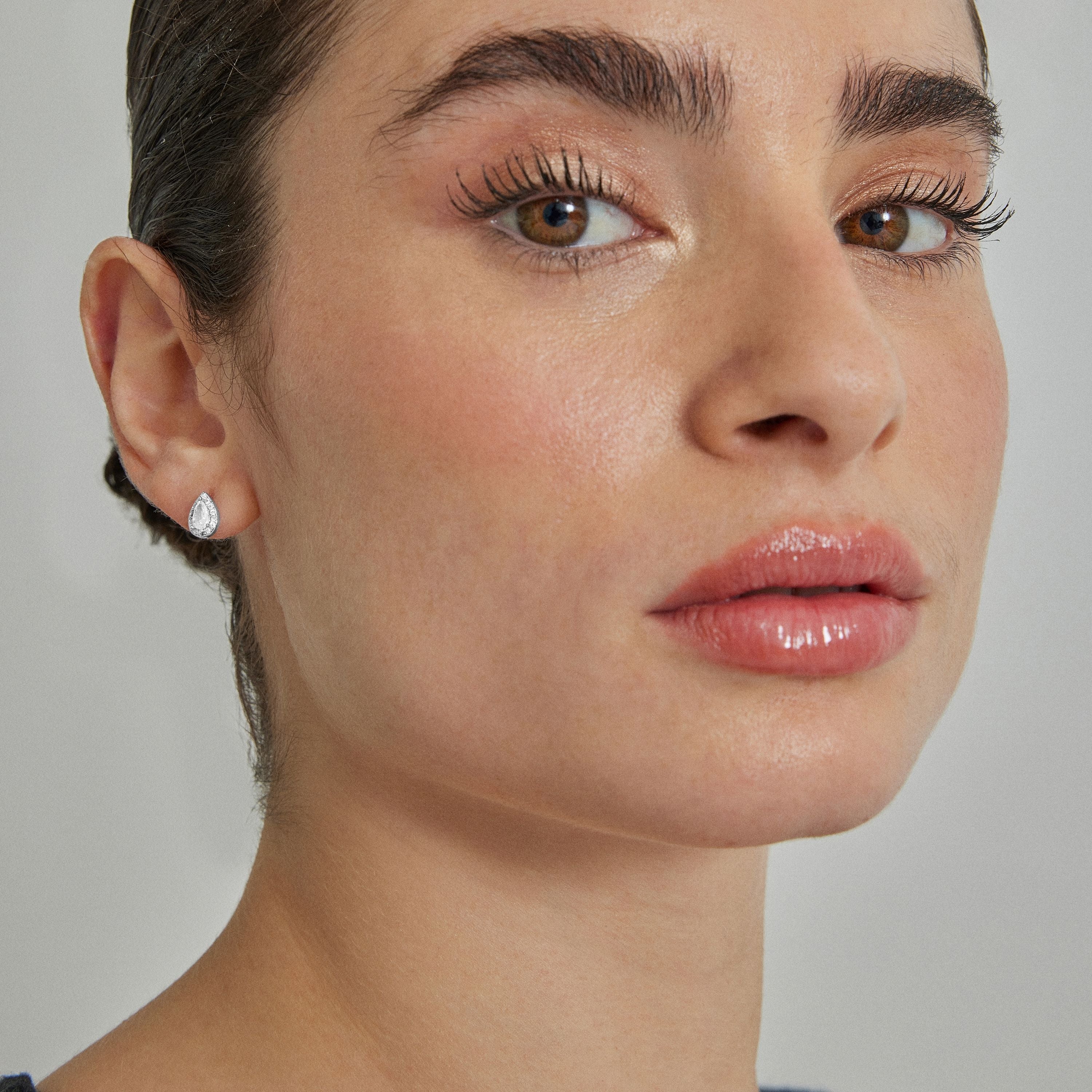 Pendientes Meiga mit glänzenden Zirkonia, veredelt mit Rhodium-Beschichtung. Afrika Basic verkörpert die raffinierte Schlichtheit, zeitlose Stücke mit sanften Linien und dem zusätzlichen Glanz der Zirkonia. Unaufdringliche Basisschmuckstücke, die perfekt für den täglichen Gebrauch sind, aber auch bei besonderen Anlässen funktionieren können.