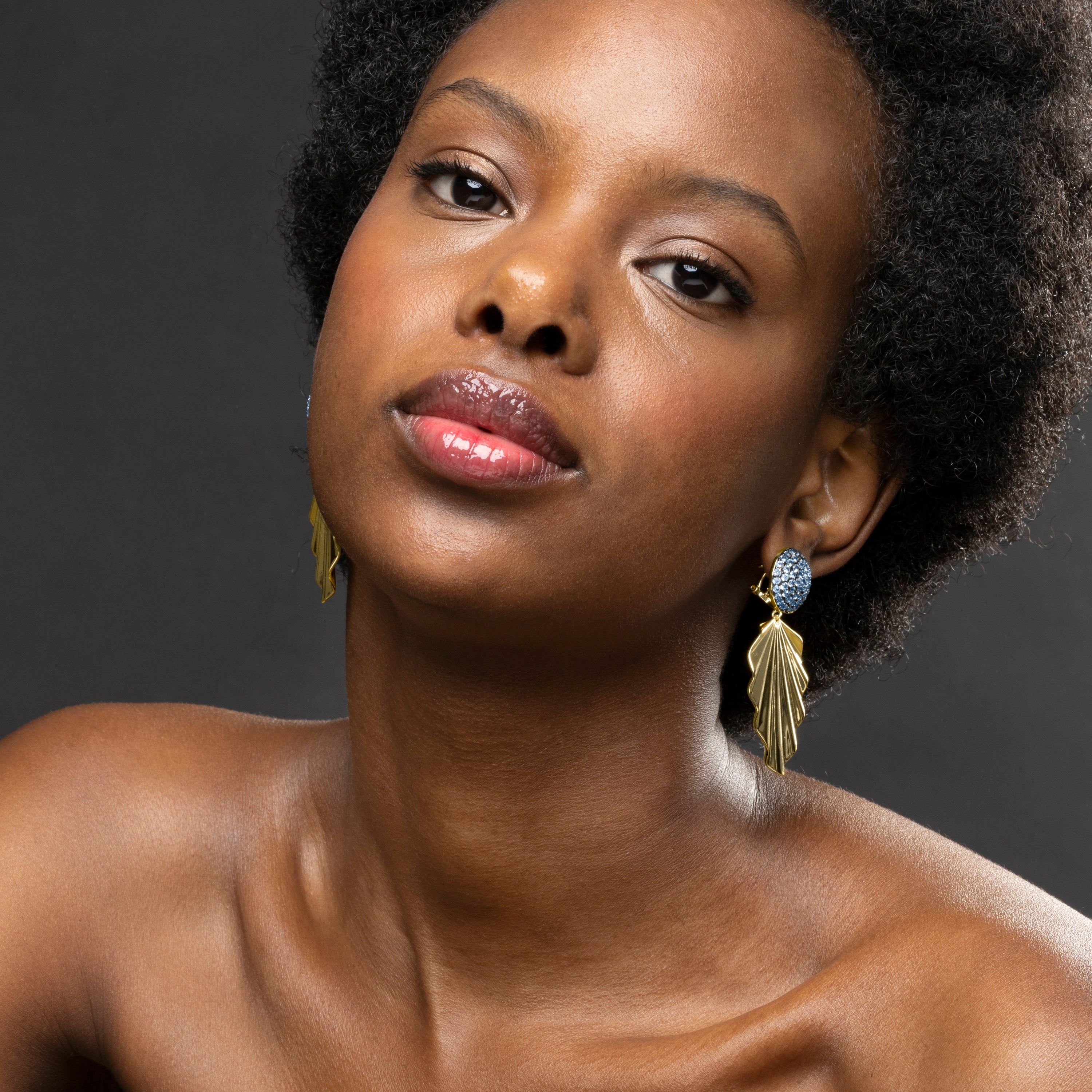 Ohrringe Nyesil aus hellgrünem hydrothermalem Quarz, veredelt mit 18K Gelbgold. Afrika wird zur perfekten Linie für Frauen mit Persönlichkeit, die keine Angst haben, Risiken einzugehen und Stücke mit eigenem Charakter zu tragen.