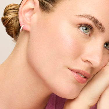 Ulgel Ohrringe mit funkelndem Zirkonia in Silberoptik. Essential verkörpert die raffinierte Schlichtheit, zeitlose Stücke mit sanften Linien und dem zusätzlichen Glanz der Zirkonias. Unaufdringliche Basics, die perfekt für den täglichen Gebrauch sind, aber auch bei besonderen Anlässen funktionieren können.