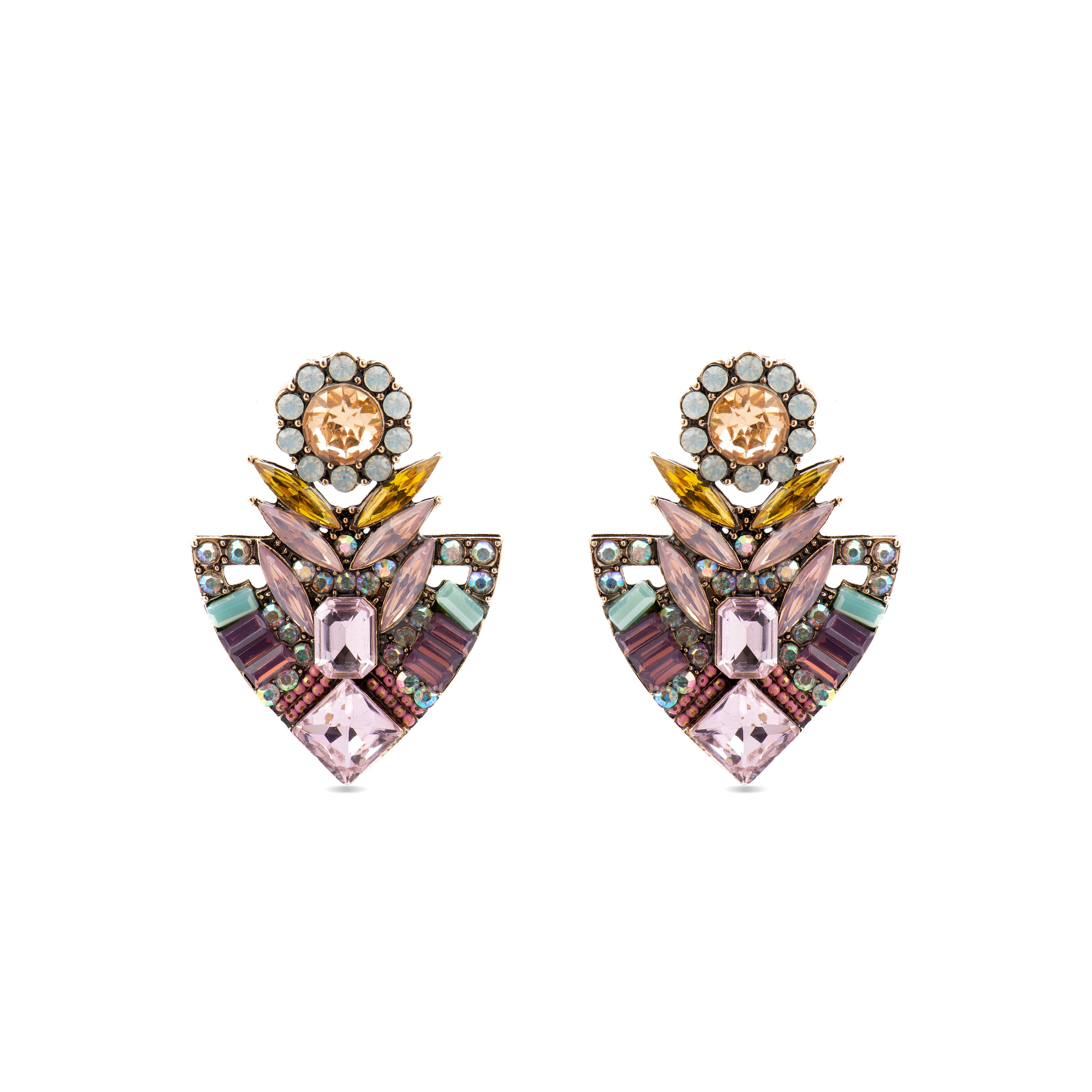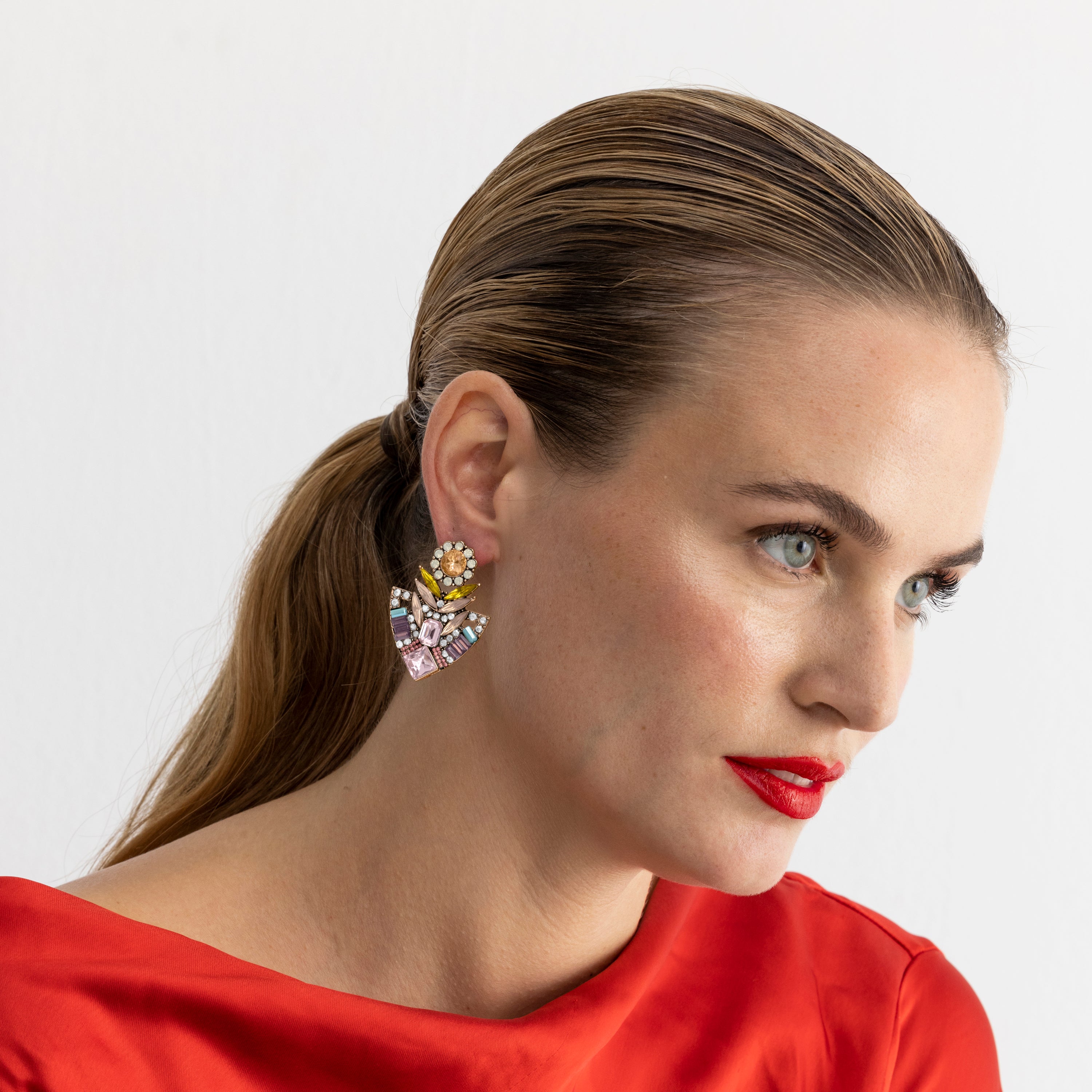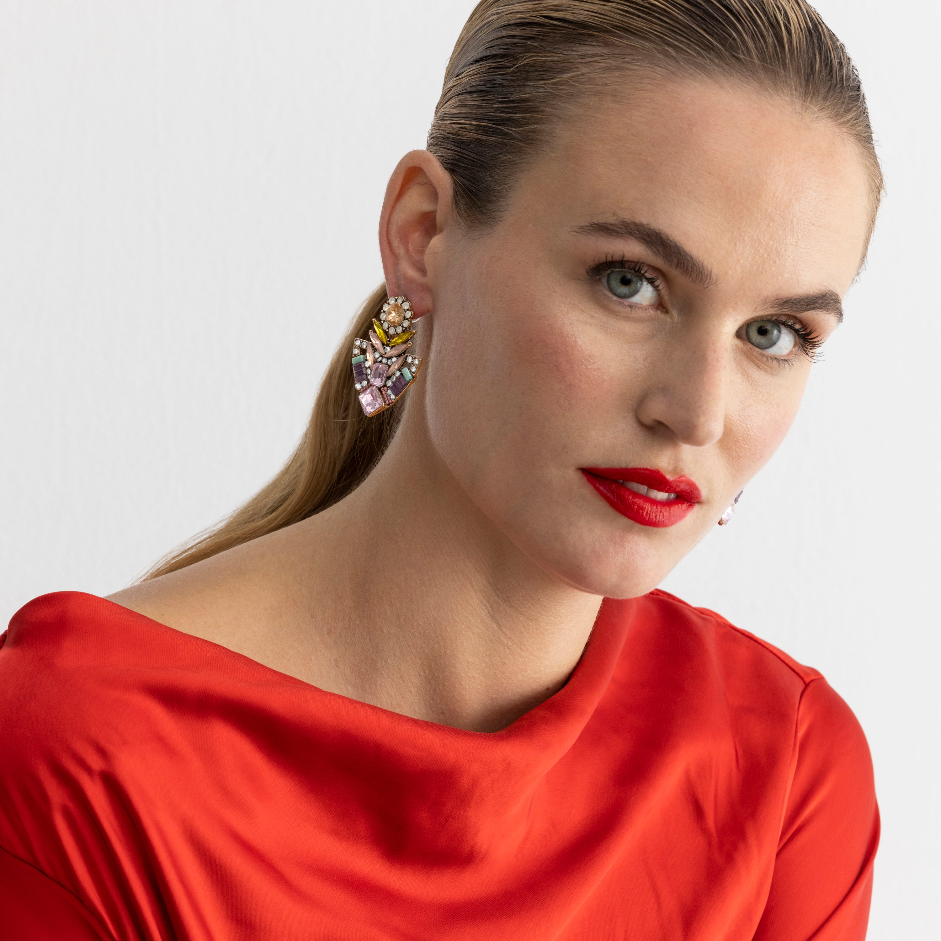 Aphuat Ohrringe mit mehrfarbigem Kristall, 18 Karat Gold-Finish. Afrika wird zur perfekten Linie für Frauen mit Persönlichkeit, die keine Angst haben, Risiken einzugehen und Stücke mit eigenem Charakter zu tragen.