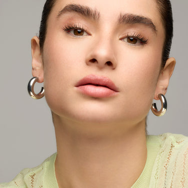 Ohrringe Thea in Silberfinish. Essential verkörpert die raffinierte Schlichtheit, zeitlose Stücke mit sanften Linien und dem zusätzlichen Glanz von Zirkonia. Unaufdringliche Basics, die perfekt für den täglichen Gebrauch sind, aber auch bei besonderen Anlässen funktionieren können.