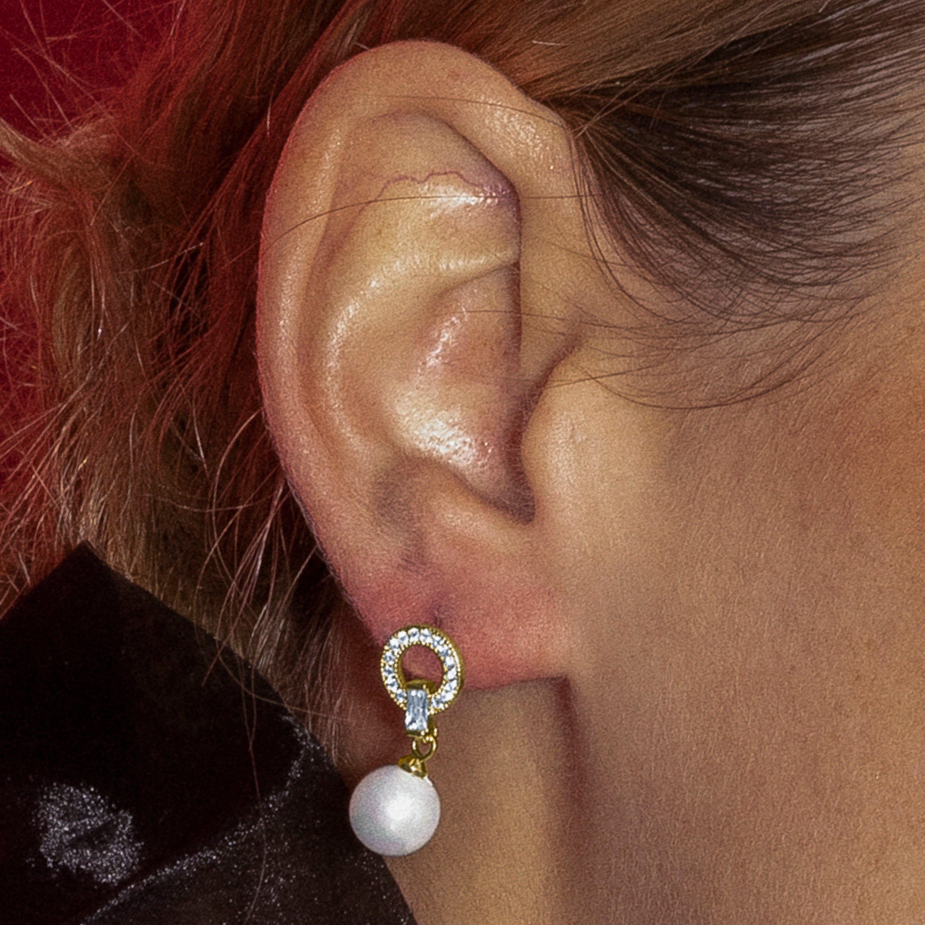 Ohrringe mit weißer Perle, 18k Gold-Finish - Hicur