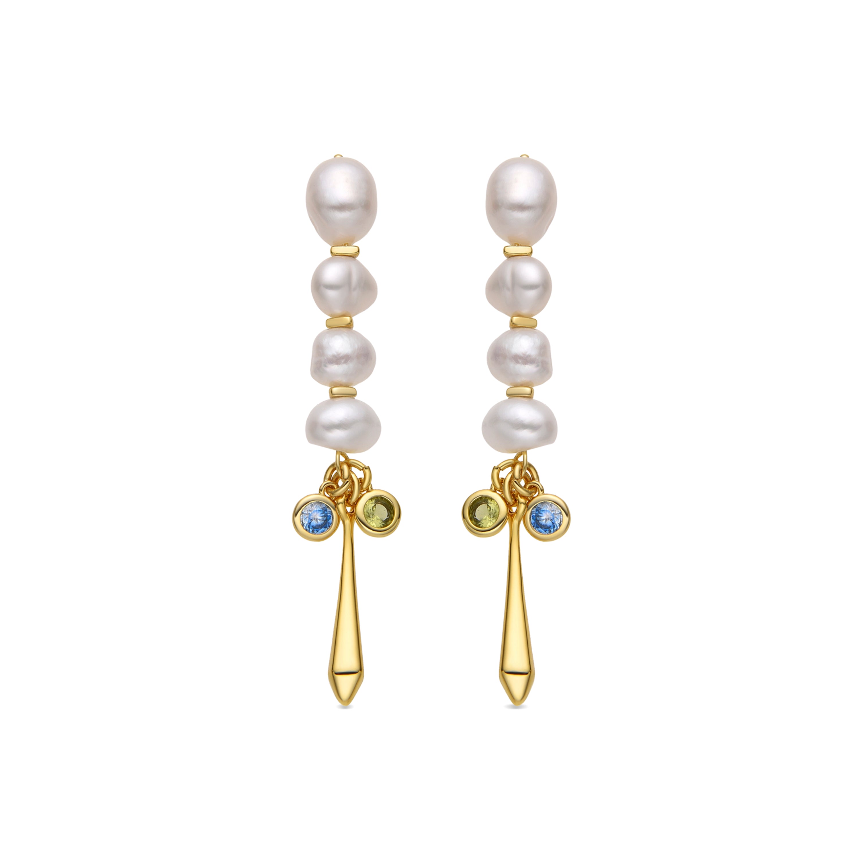 Ohrringe Thydo aus 925er Sterlingsilber und weißer Perle mit 18k Goldfinish. Trendy repräsentiert die Schlüsseltrends in der Modewelt. Unsere spontanste Linie, mit einem ausgeprägten modernen Geist, der sich in farbenfrohen Schmuckstücken widerspiegelt, in denen der Einsatz von Natursteinen und Designs in Form von Amuletten und Talismane hervorsticht.