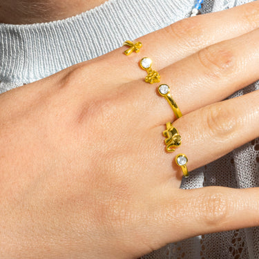 Orssi Ring in 925 Sterling Silver and Brilliant Cubic Zirconia with 18k Gold Finish. Make a wish is characterized by youthful designs, full of meaning and color, original yet discreet, aiming to become small amulets.