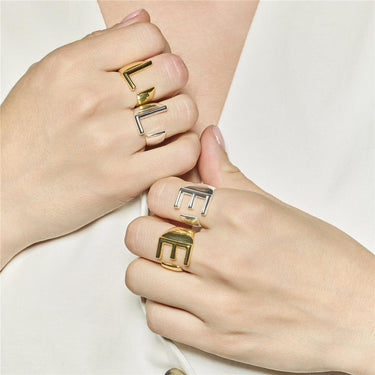 Alphabet Ring made of Metal Alloy finished in 18k Yellow Gold. Besides creating styles to run around the world, our designs make a difference and ensure that difference is radical. Carefully handcrafted designs with top-quality materials bring to life an Alphabet in different sizes.