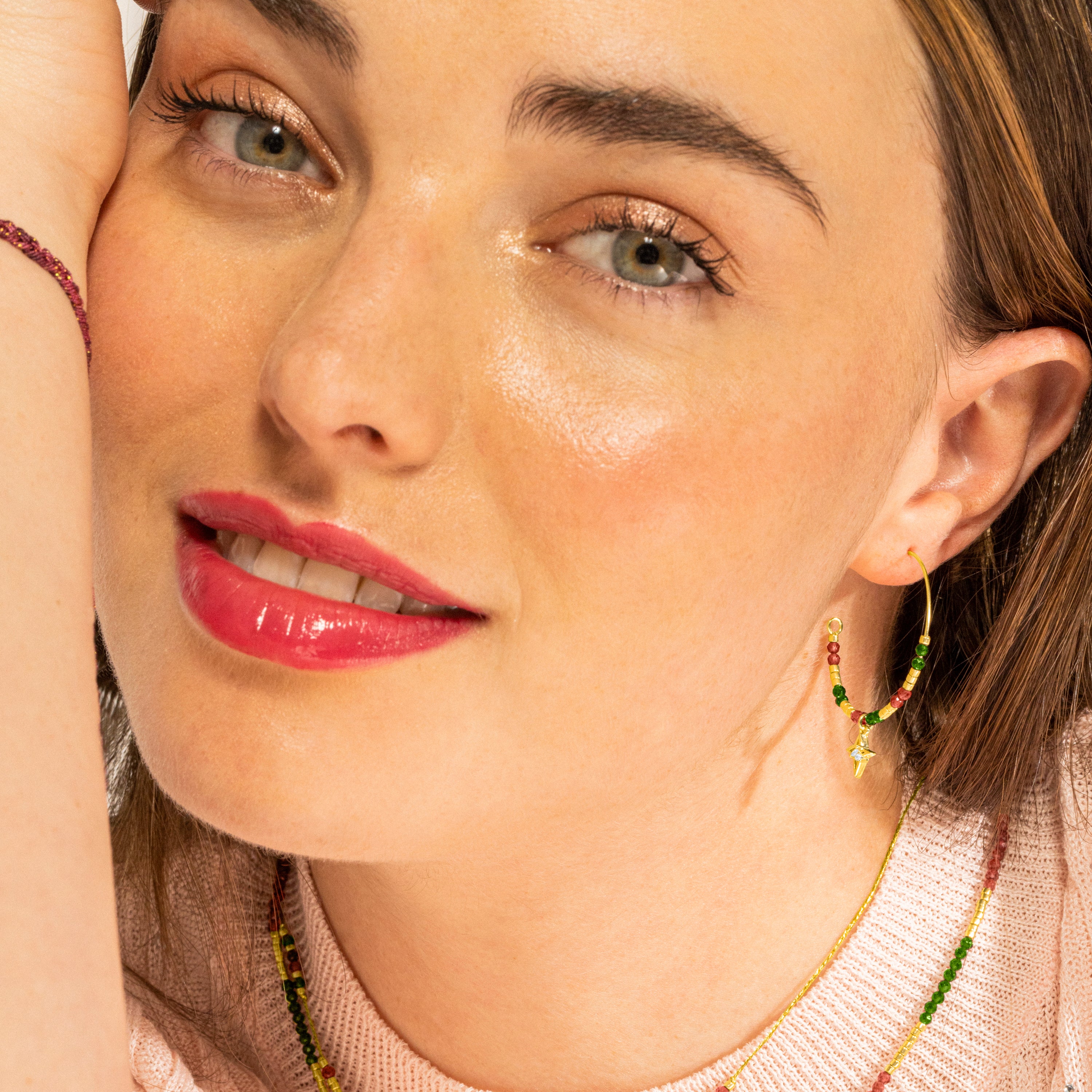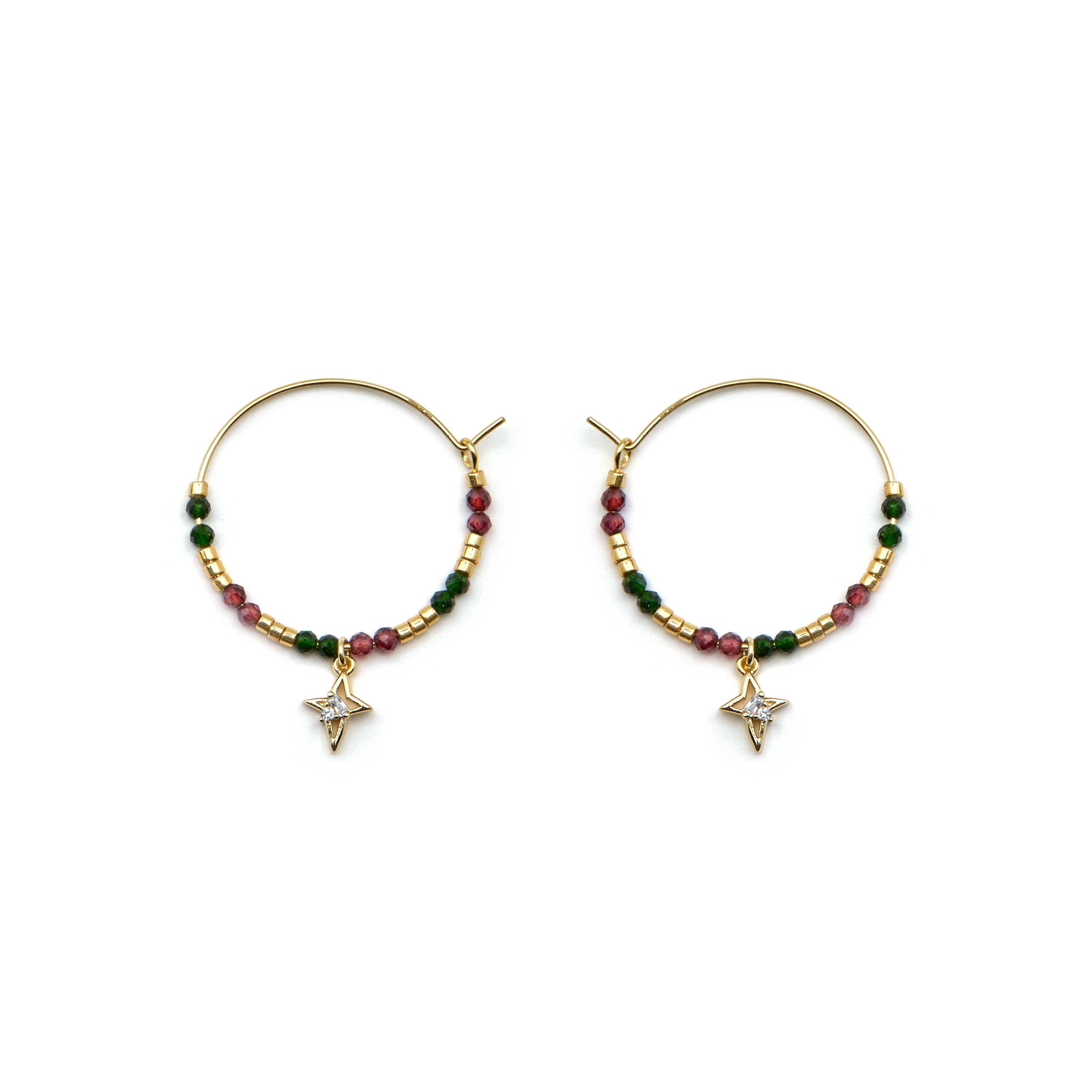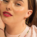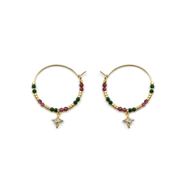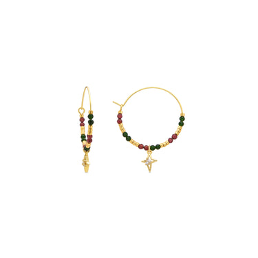 "Paila hoop earrings made of 925 sterling silver, beads and metal pendant with Brilliant Zirconia finished in 18k gold. Make a wish is characterized by designs with a youthful character, full of meaning and color, original yet discreet, aiming to become small amulets."