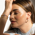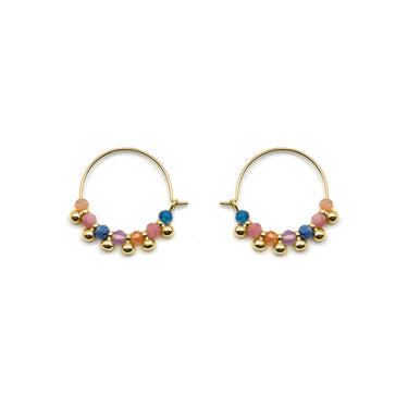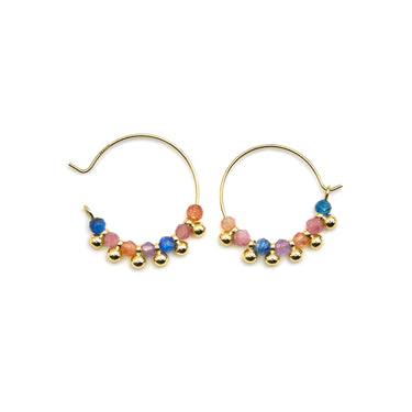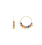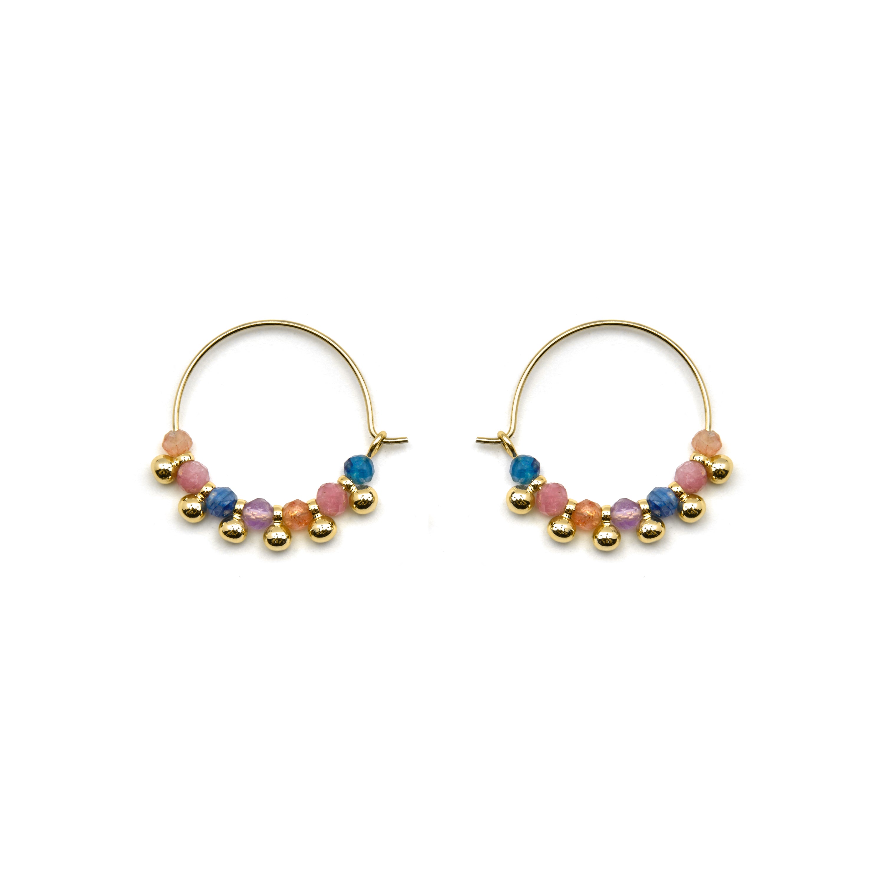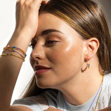 "Kapac earrings made of 925 sterling silver, beads and pendants made of metal and multicolored crystal with an 18k gold finish. Make a wish is characterized by designs of a youthful nature, full of meaning and color, original yet discreet, aiming to become small amulets."