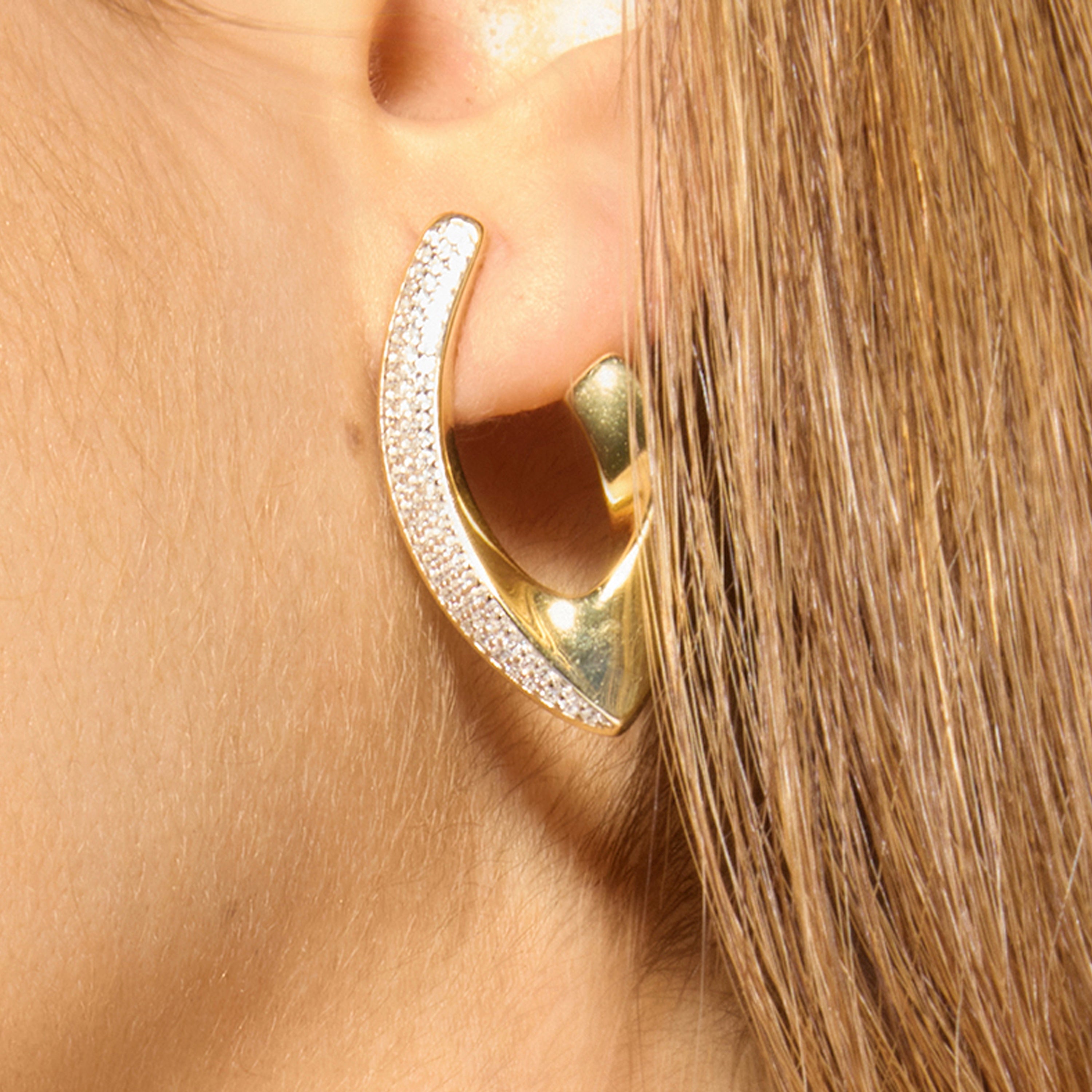 Kurpip Earrings made of 925 Sterling Silver and Brilliant Cubic Zirconia with 18k yellow gold finish