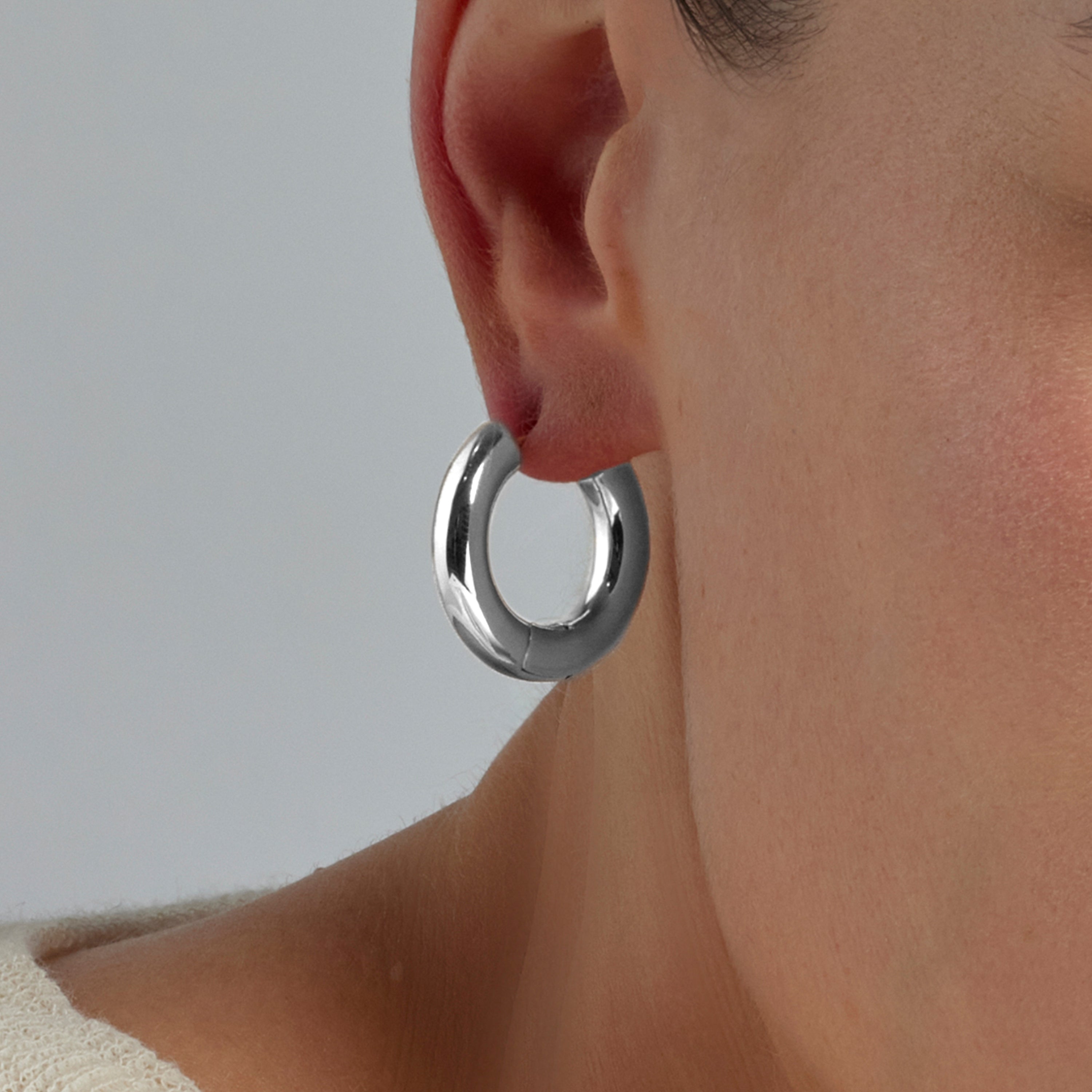 Saura silver finish earrings. África Basic embodies refined simplicity, timeless pieces with soft lines and the added sparkle of cubic zirconia. Unpretentious basic jewelry that is perfect for everyday wear, but can also work for special occasions.