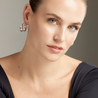 Nove silver finish earrings. África Basic embodies refined simplicity, timeless pieces with soft lines and the added sparkle of cubic zirconia. Unpretentious basic jewelry that is perfect for everyday wear, but can also work for special occasions.