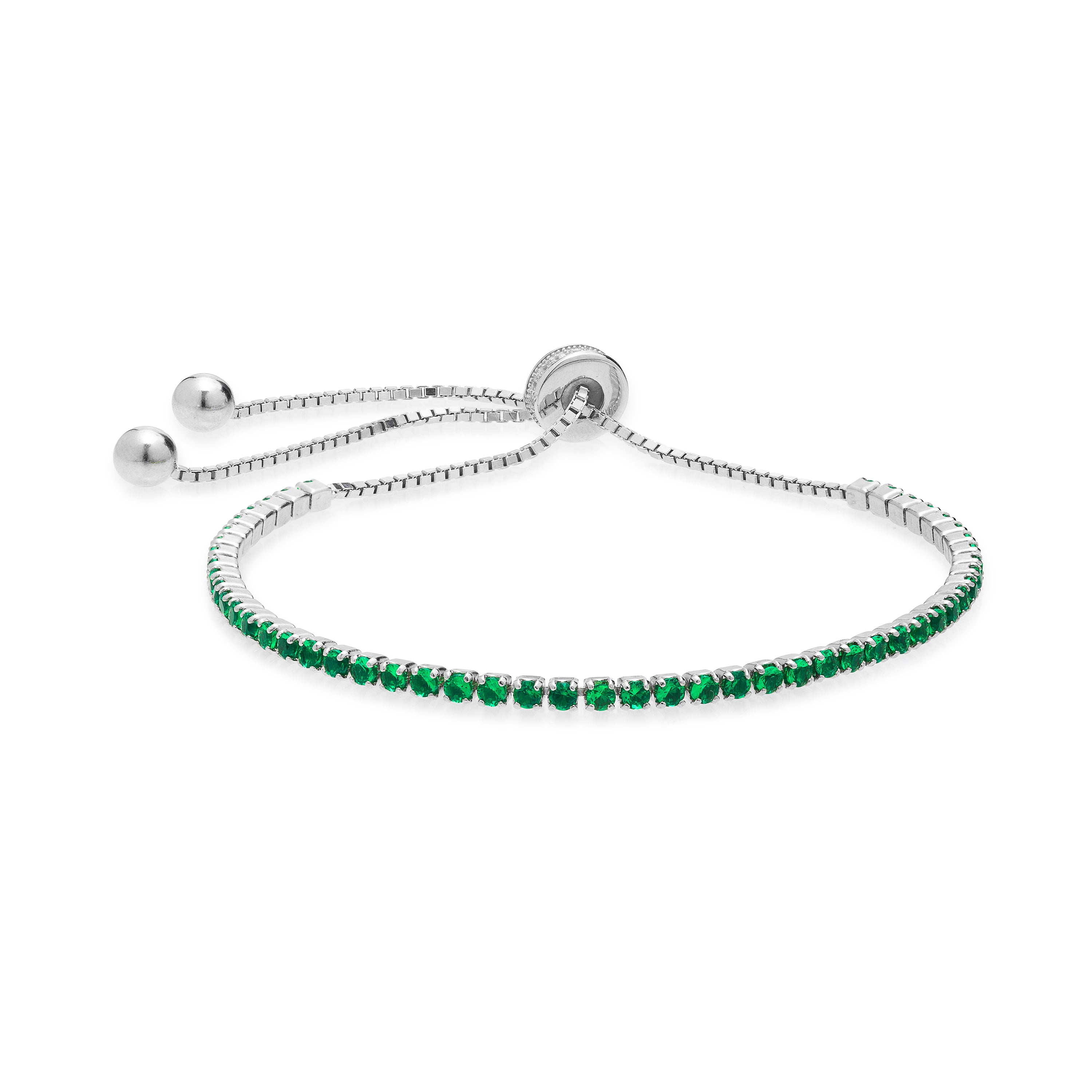 925 Sterling Silver Bracelet with Emerald Zirconia finished in Rhodium - Leythor