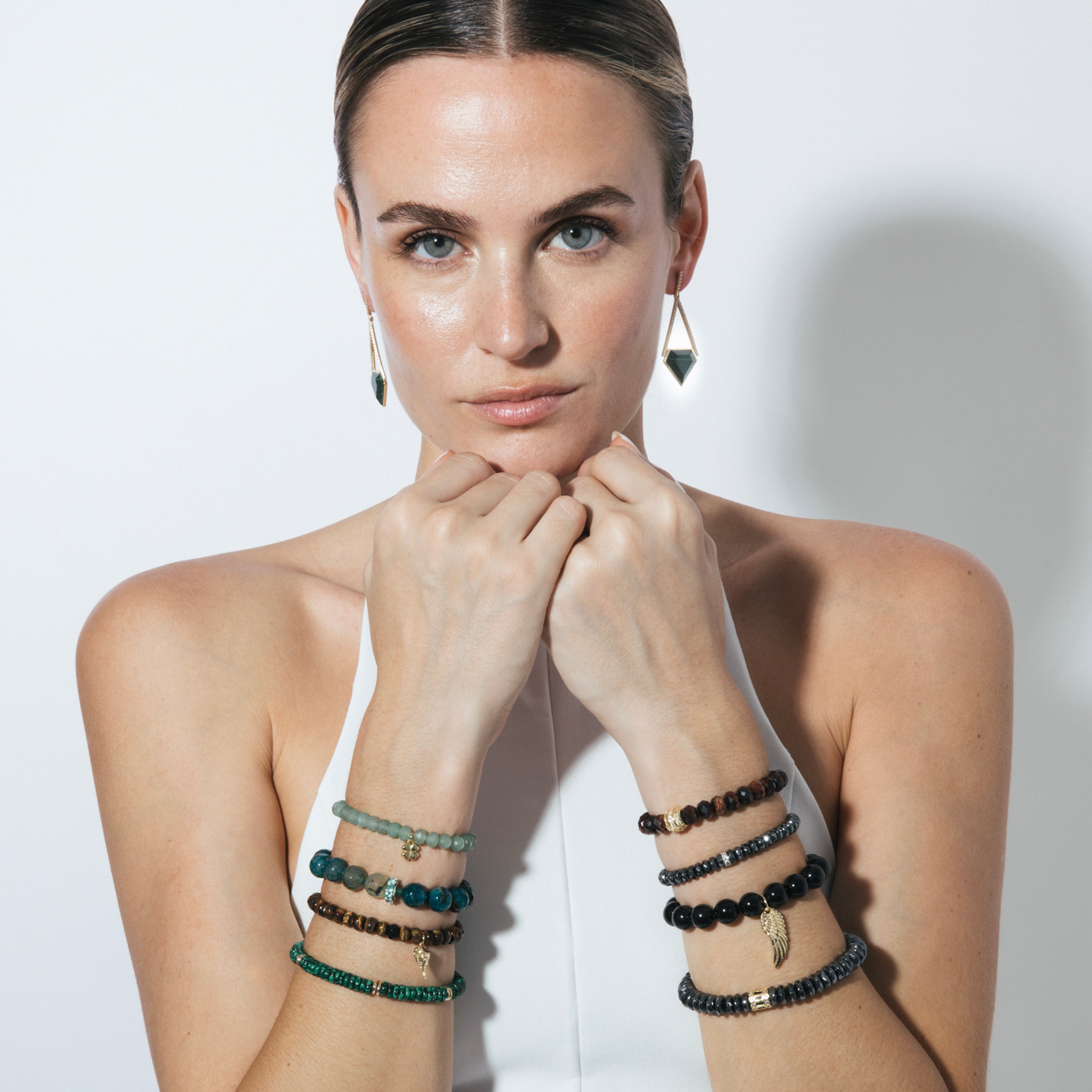 Kremi bracelet made of 925 sterling silver and green agate finished in 18k yellow gold