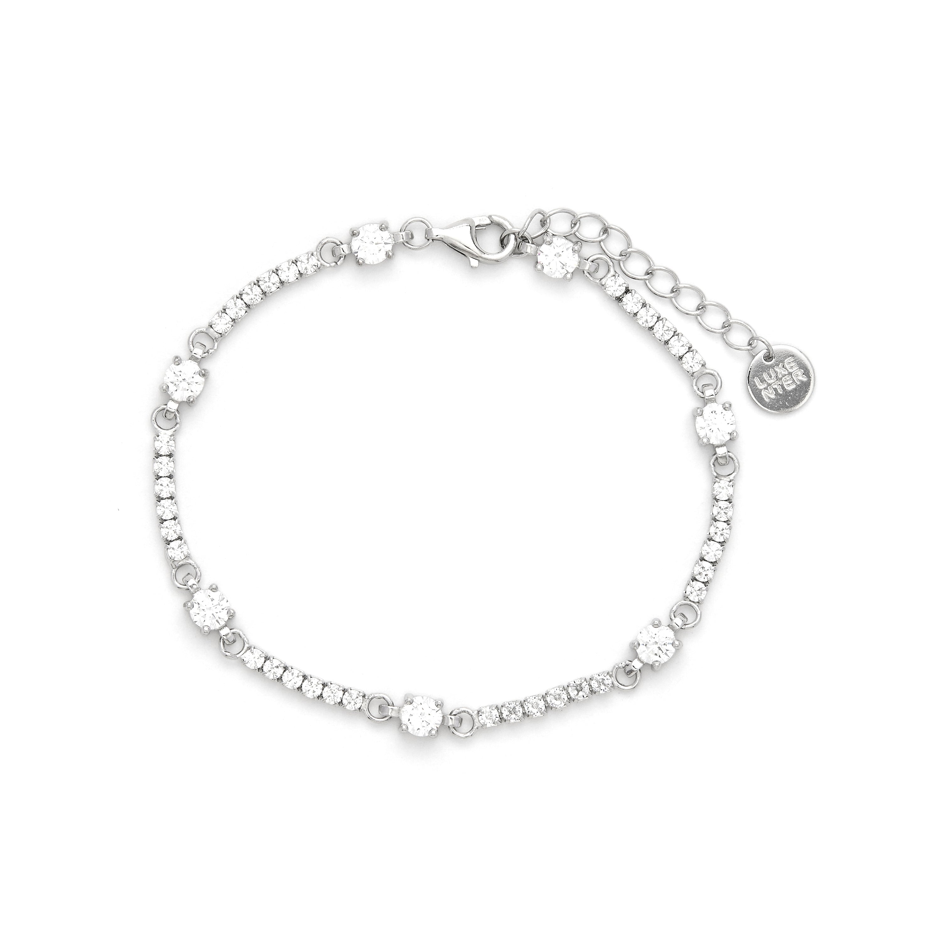 925 Sterling Silver Bracelet with Bright Cubic Zirconia Rhodium Finished - Zarno