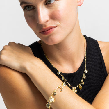 Nafir metal bracelet finished in 18k gold. The Boho style is a free-spirited aesthetic that blends different cultures and artistic expressions into an eclectic style with an emphasis on organic elements and nature.