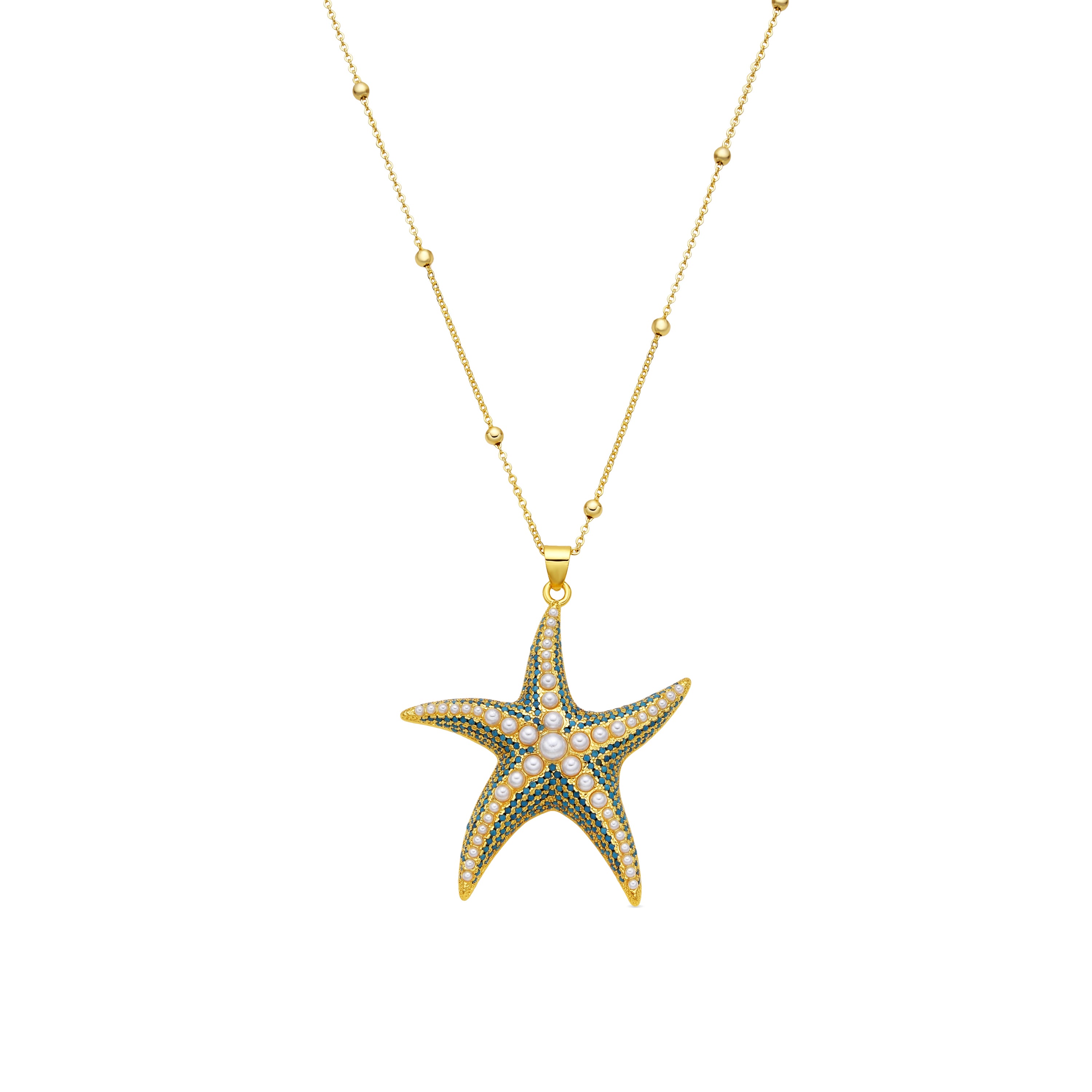 18k Yellow Gold Finished Necklace with White Pearl - Ruko