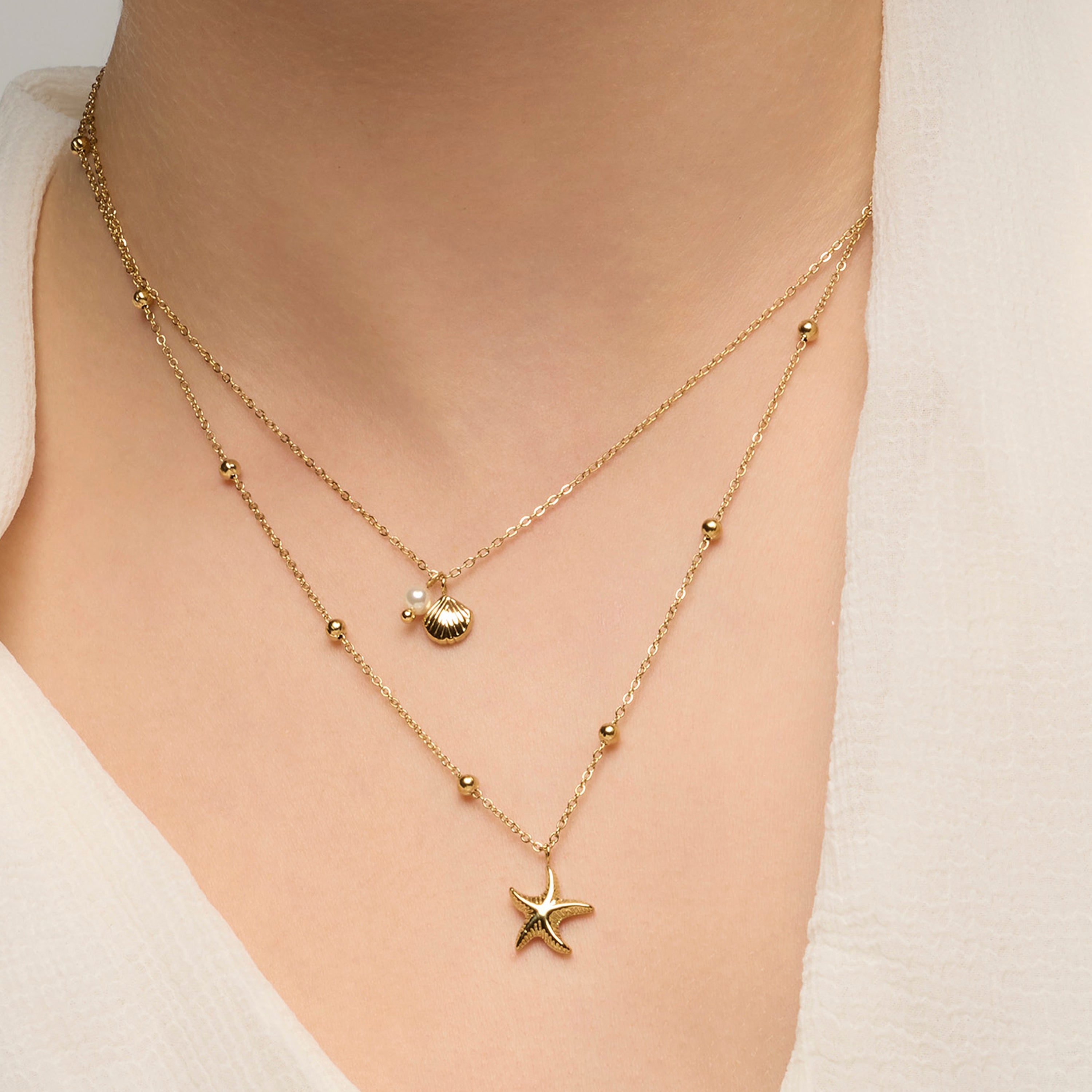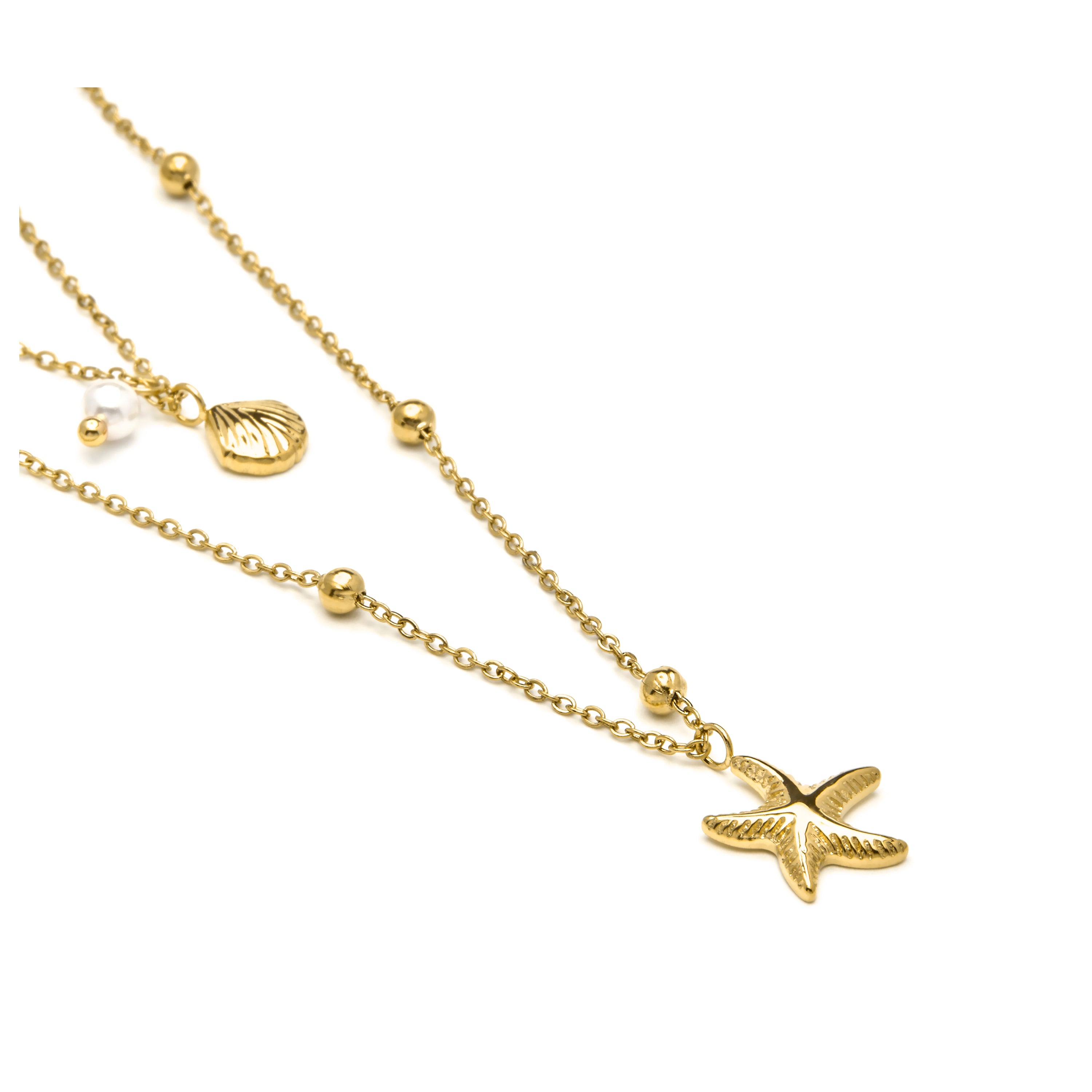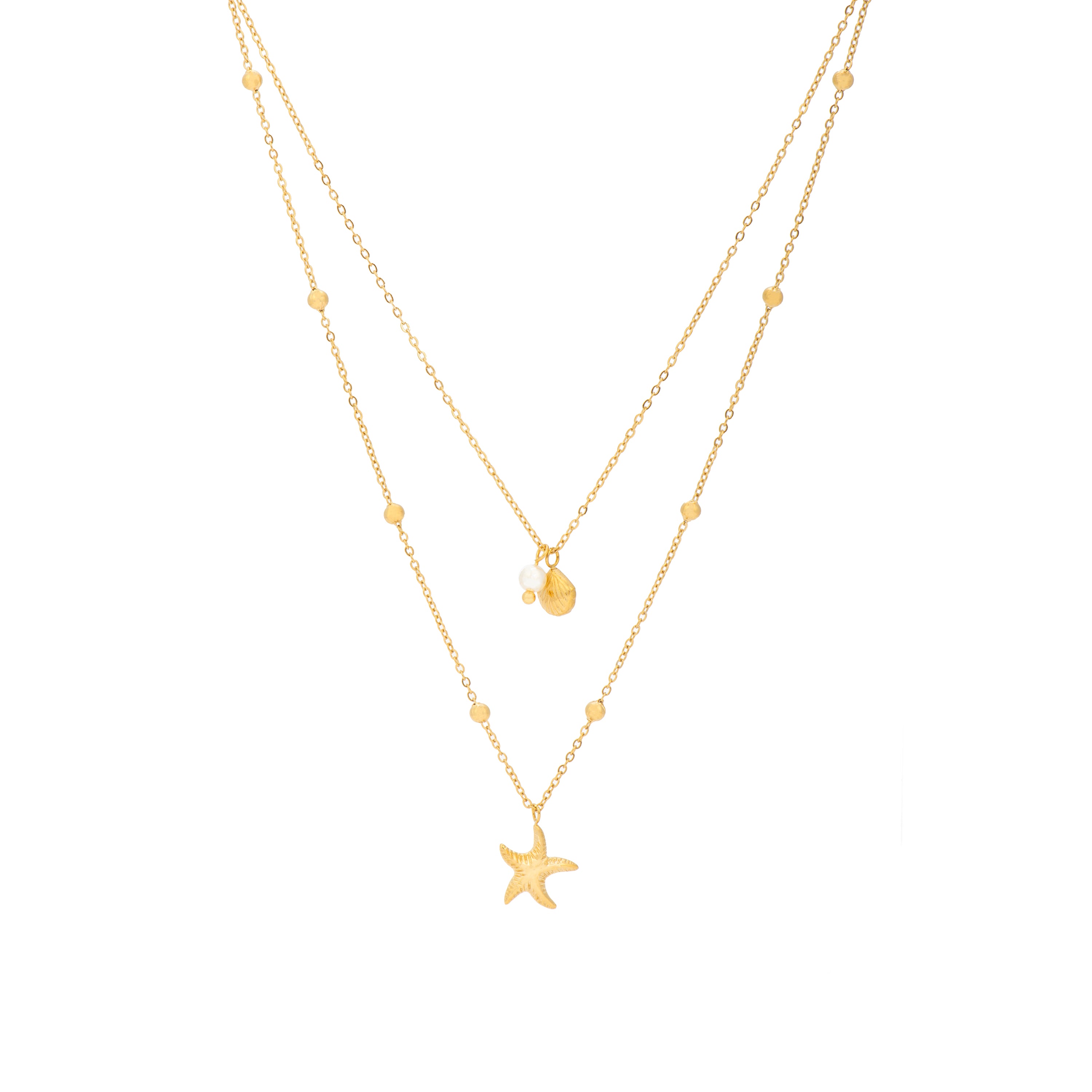 18k Yellow Gold Finished Necklace and White Pearl - Stik