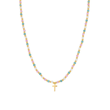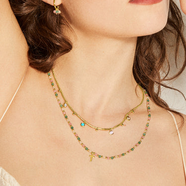 925 Sterling Silver Necklace with Multicolor Crystal finished in 18K Yellow Gold - Liwa