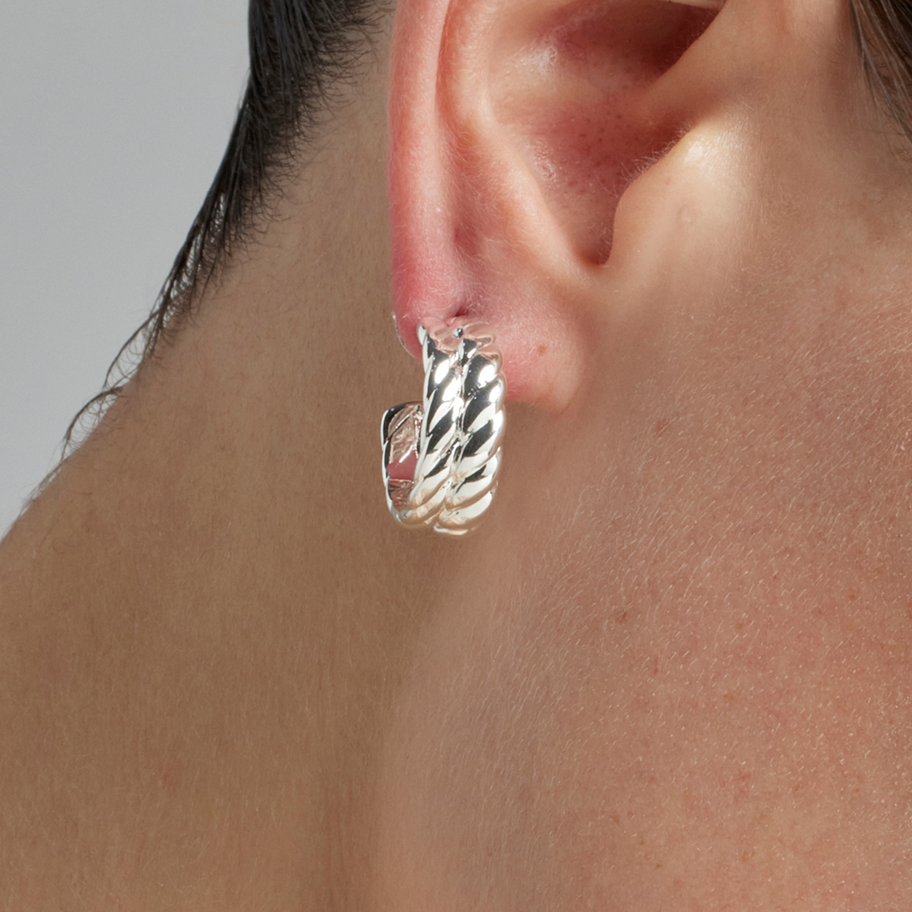 Thety silver finish earrings. África Basic embodies refined simplicity, timeless pieces with soft lines and the added sparkle of cubic zirconia. Unpretentious basic jewelry that is perfect for everyday wear, but can also work for special occasions.