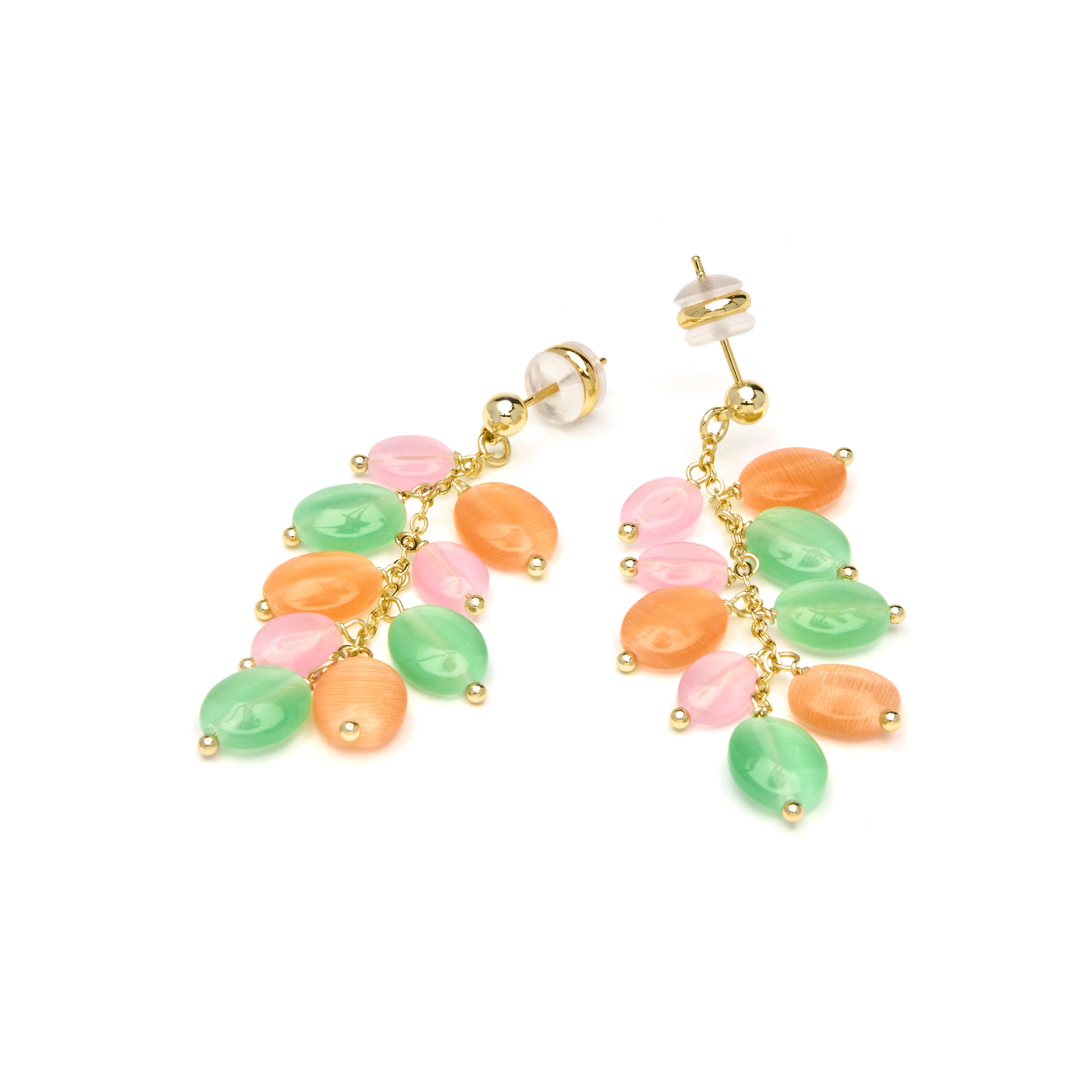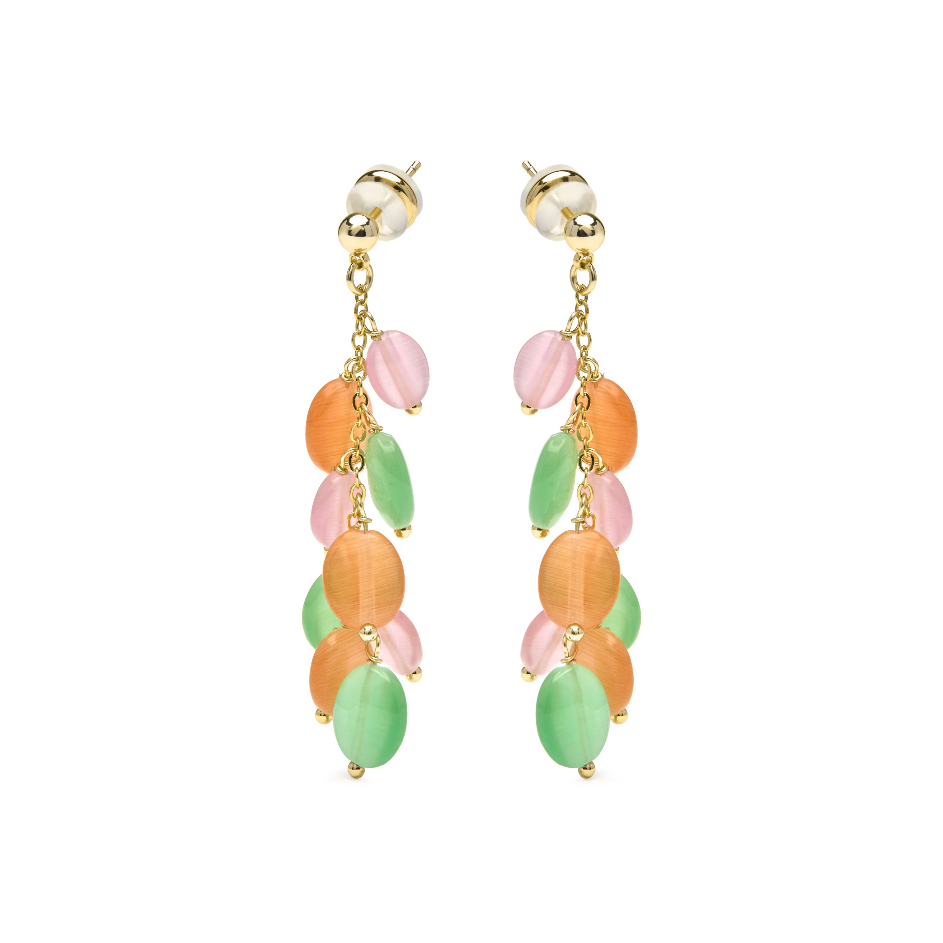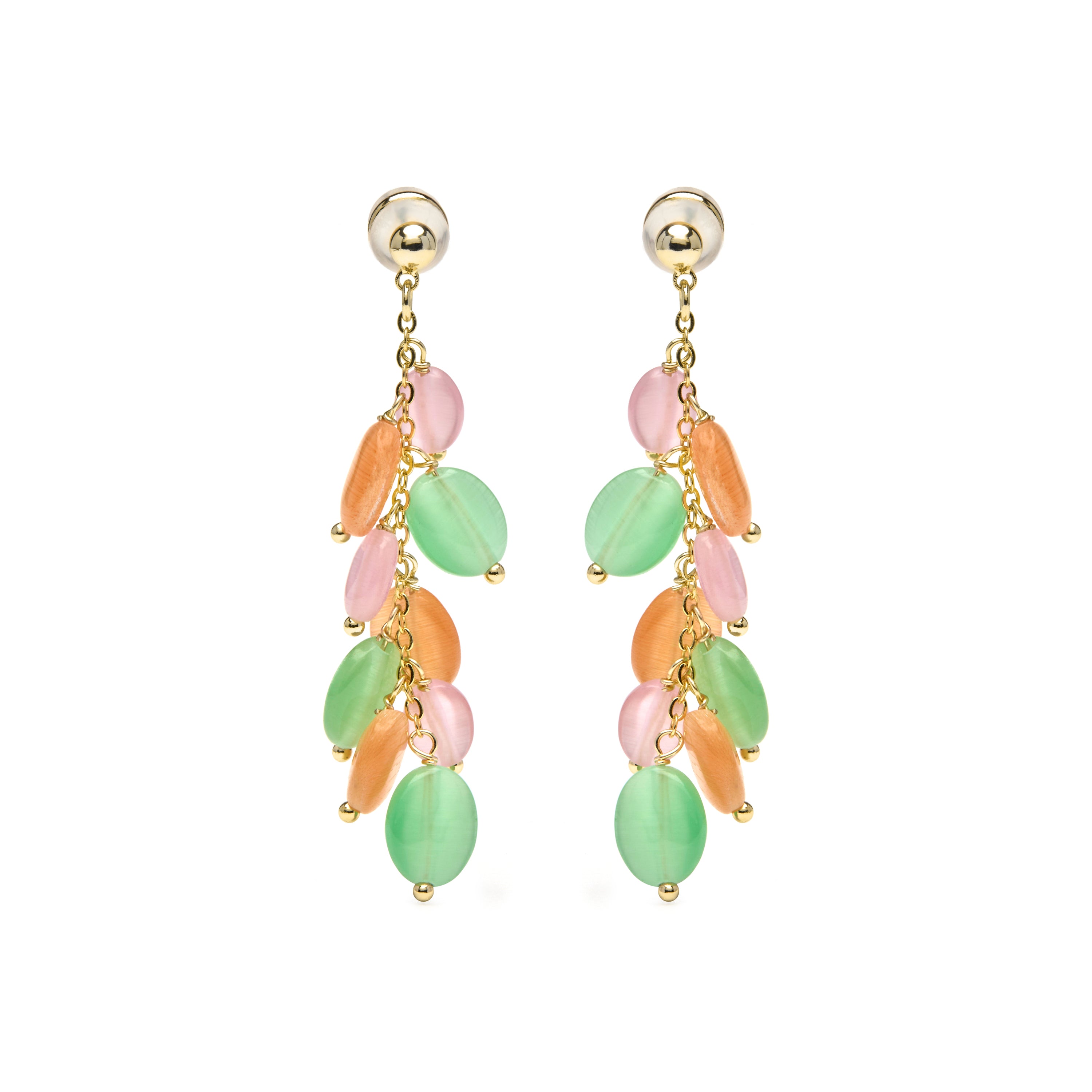 18k yellow gold finish earrings and Multicolor Cat's Eye - Gorai