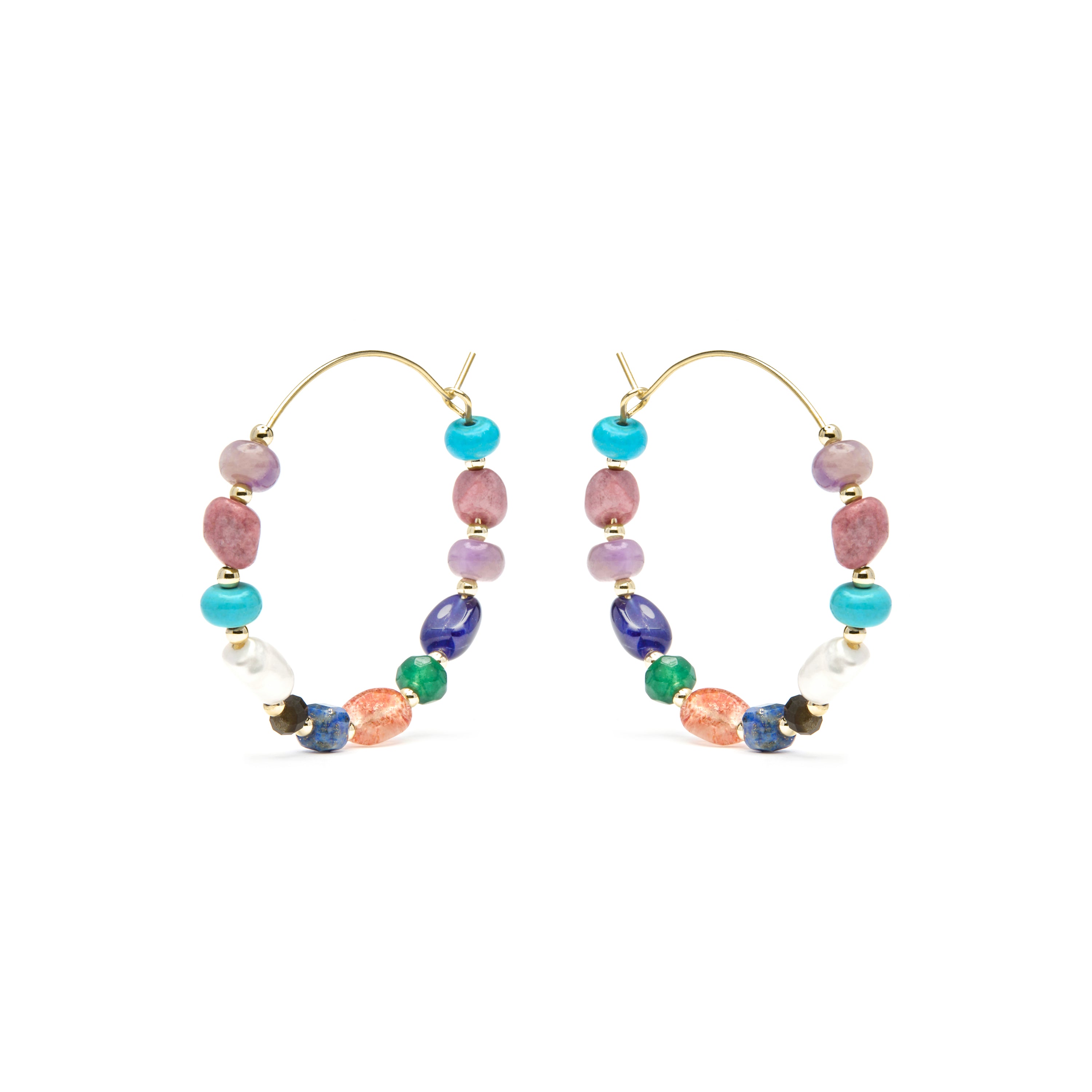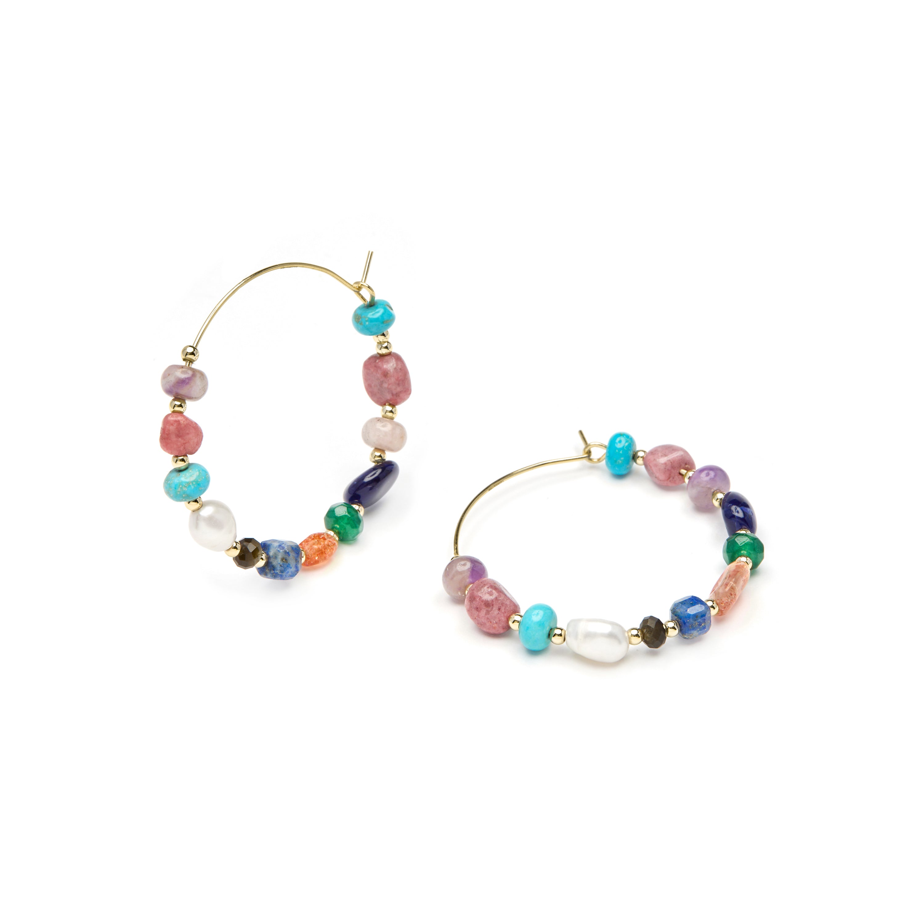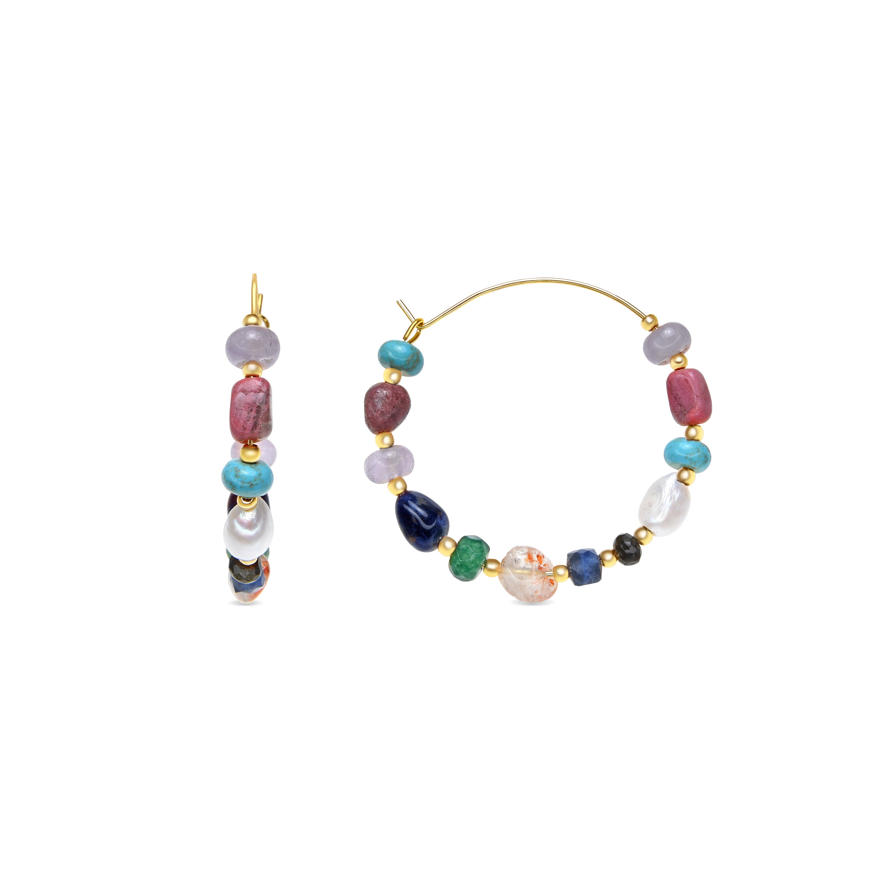 18k Yellow Gold Finish Earrings and White Pearl - Umavi
