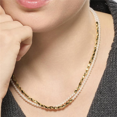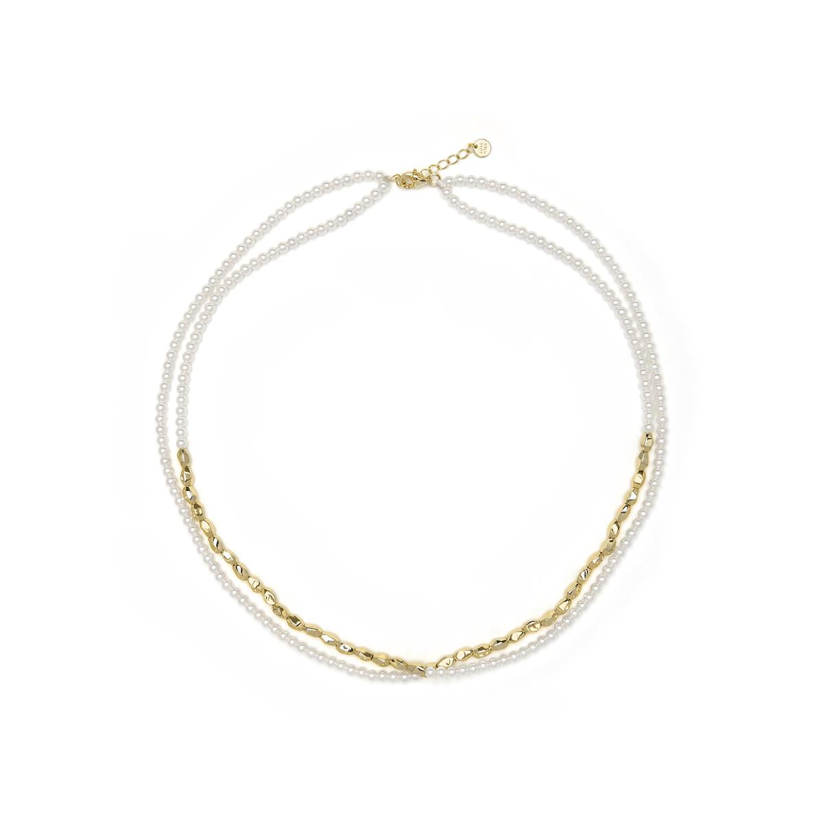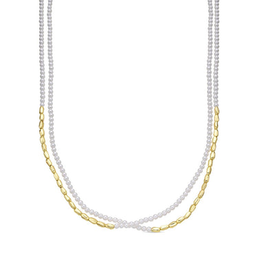 925 Sterling Silver Necklace with White Pearl and 18k Yellow Gold Finish - Noma