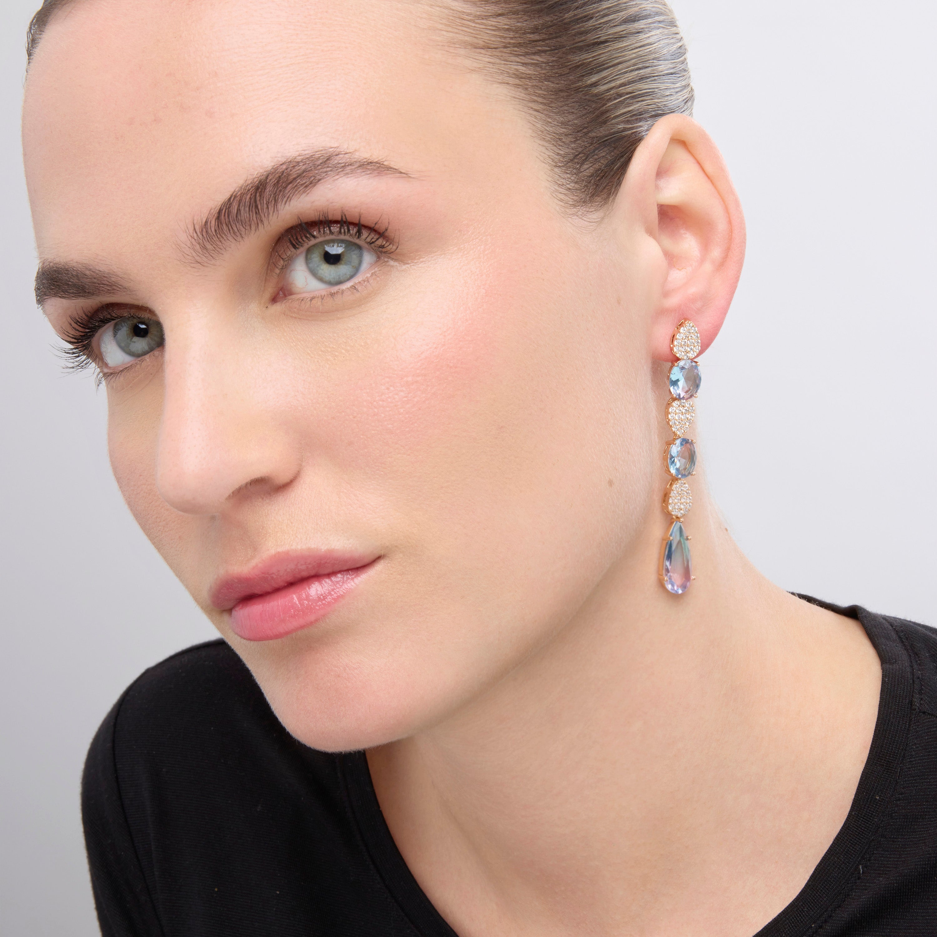 "Diario Earrings with Multicolor Zirconia finished in 18k gold. Africa becomes the perfect line for women with personality, who are not afraid to take risks and showcase pieces with their own character."