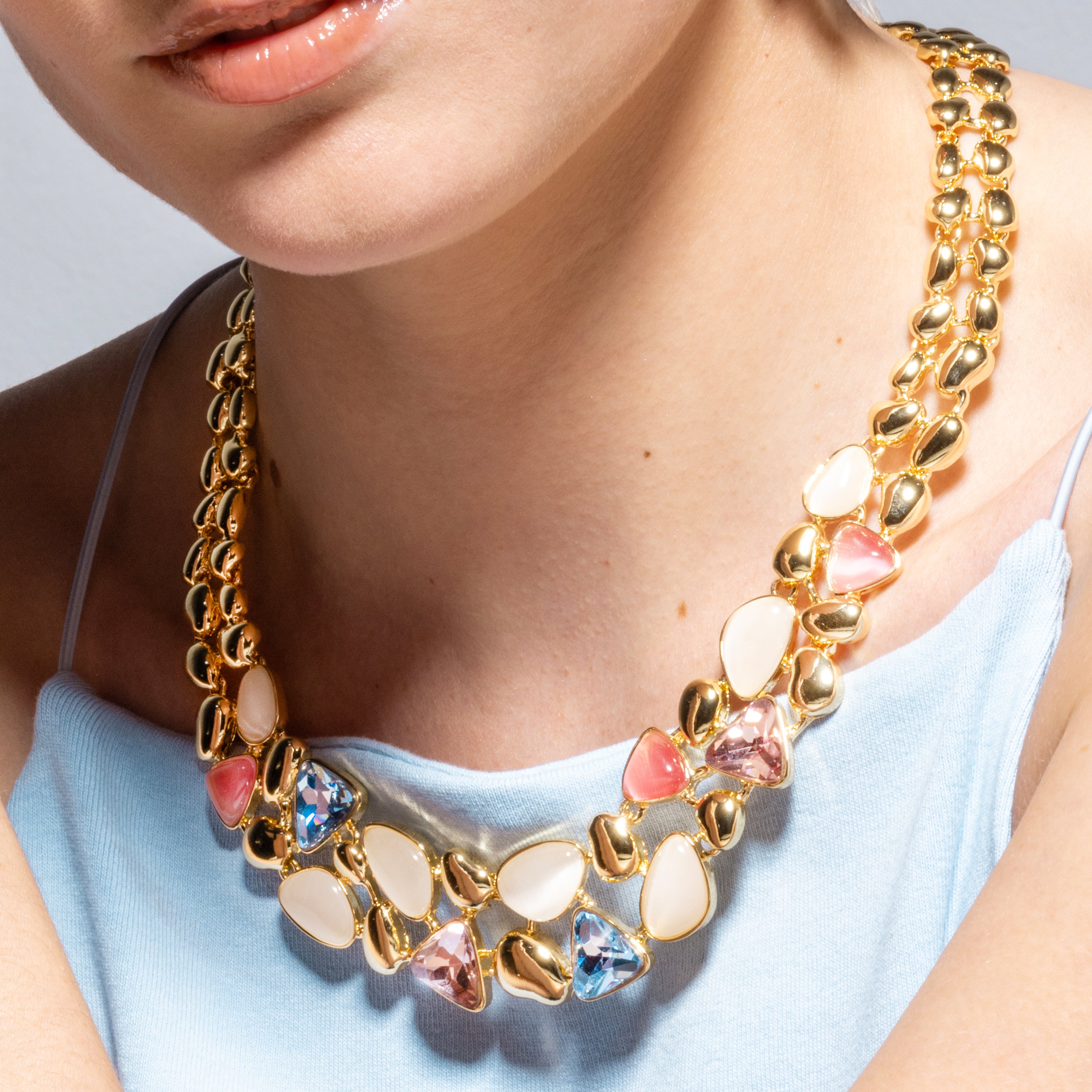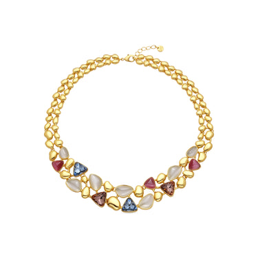 Multicolor Crystal Naxmo Necklace with 18k Yellow Gold Finish