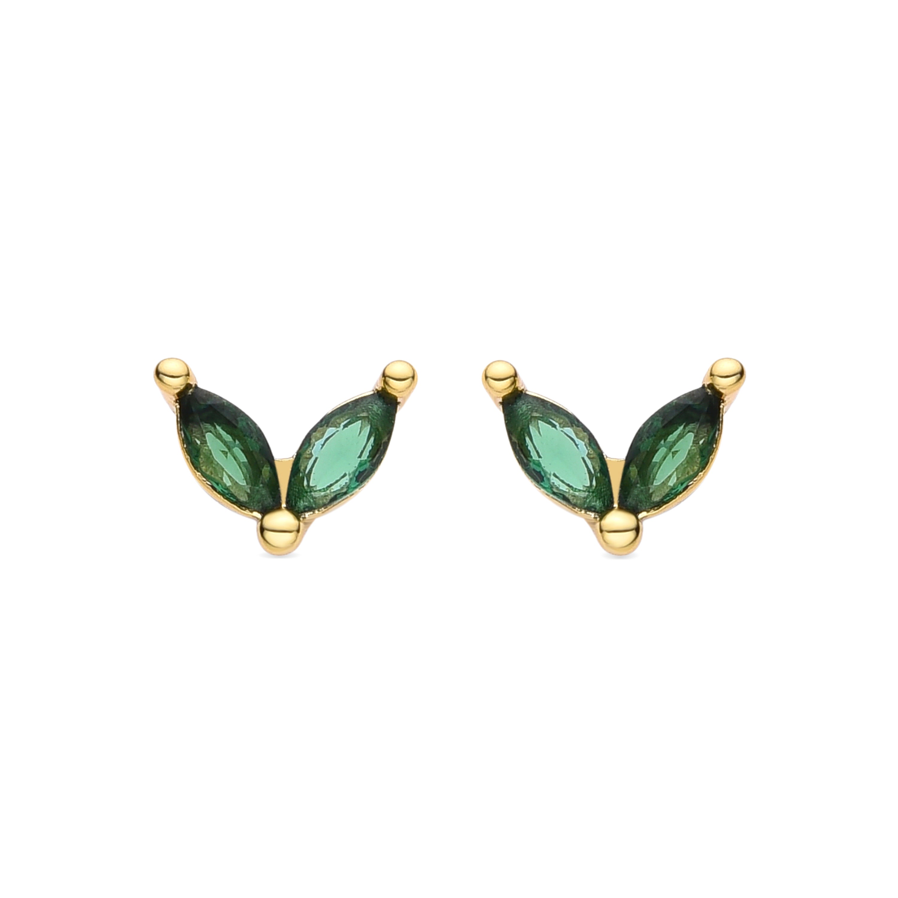 Katba Emerald Cubic Zirconia earrings finished with 18 karat yellow gold plating. África Basic embodies refined simplicity, timeless pieces with smooth lines and the added sparkle of cubic zirconias. Unpretentious basic jewelry perfect for daily wear, but also suitable for special occasions.