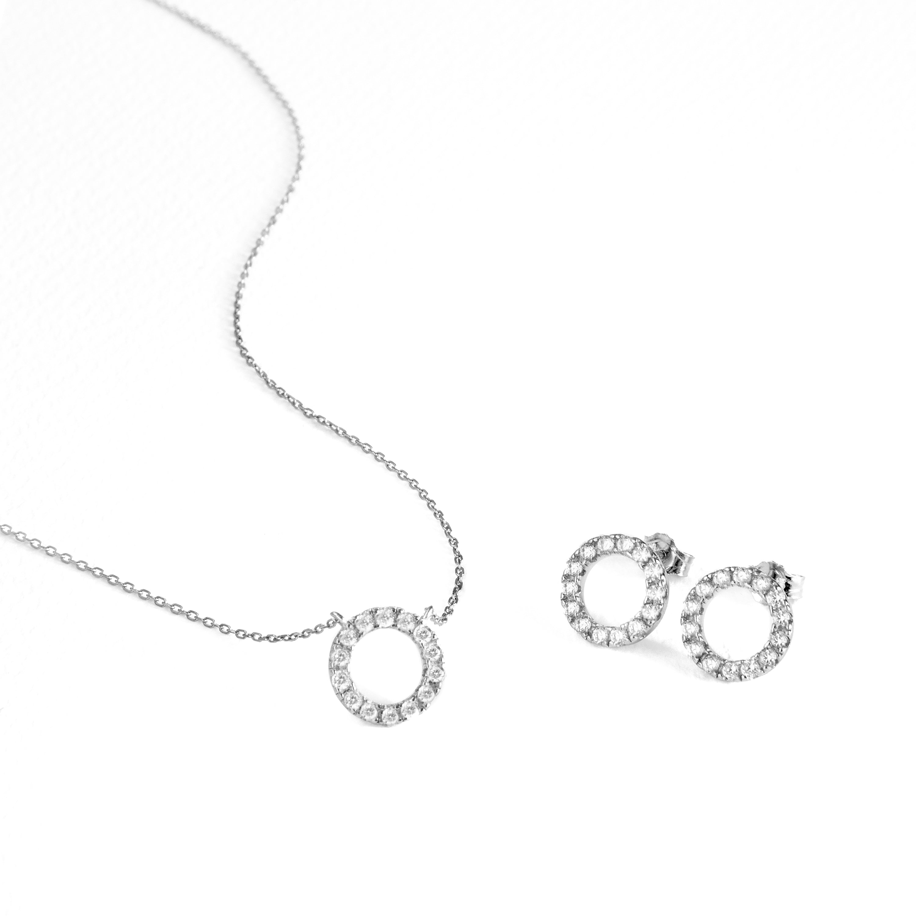 Set of Sterling Silver 925 and Brilliant Zirconia finished in rhodium. Essential embodies refined simplicity, timeless pieces with soft lines and the added sparkle of zirconias. Unpretentious basic jewelry that is perfect for everyday wear, but can also work for special occasions.