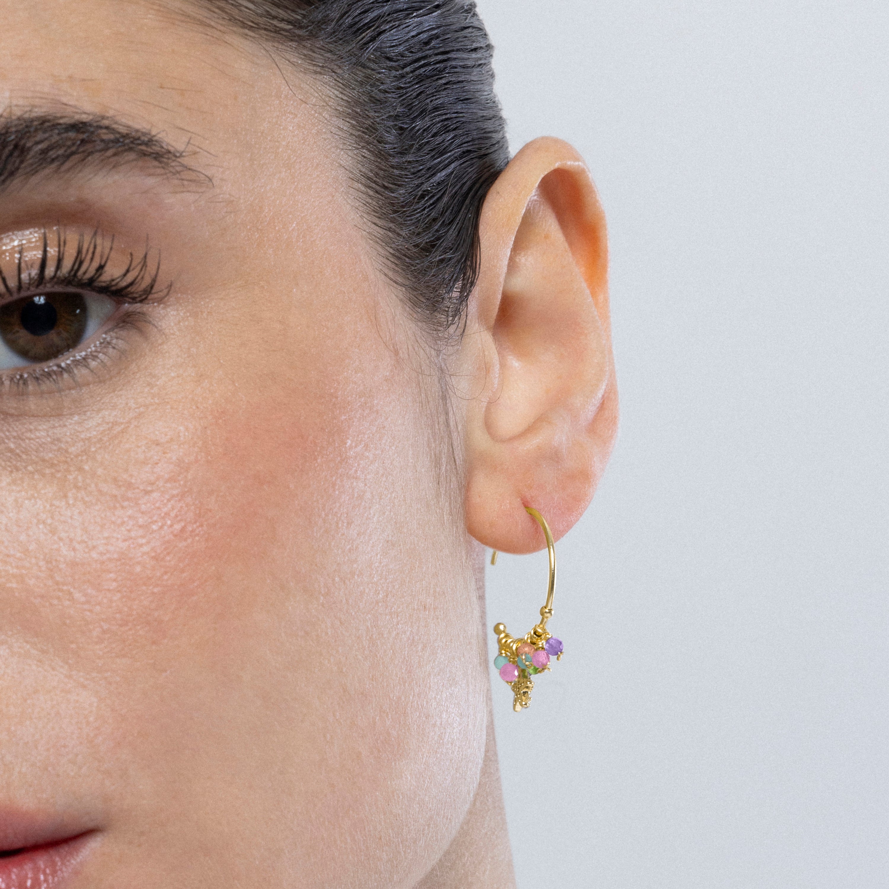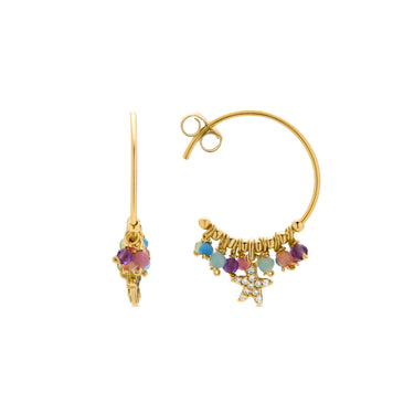 "925 Sterling Silver Star Earrings with Multicolor Crystal finished in 18k yellow gold. Make a wish is characterized by designs of a youthful nature, full of meaning and color, original yet discreet, aiming to become small amulets."