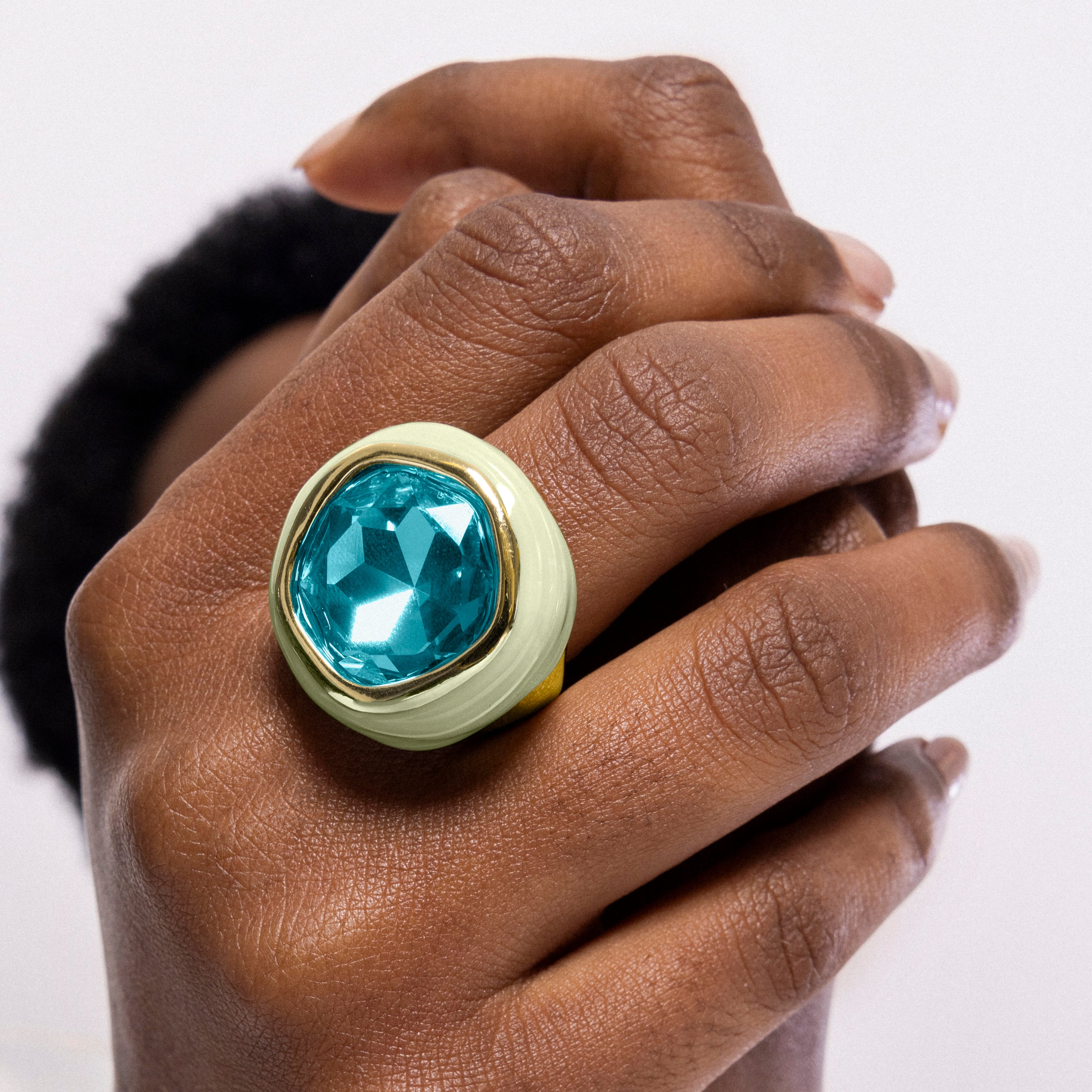 Green Crystal Ring finished in 18K yellow gold - Mantis