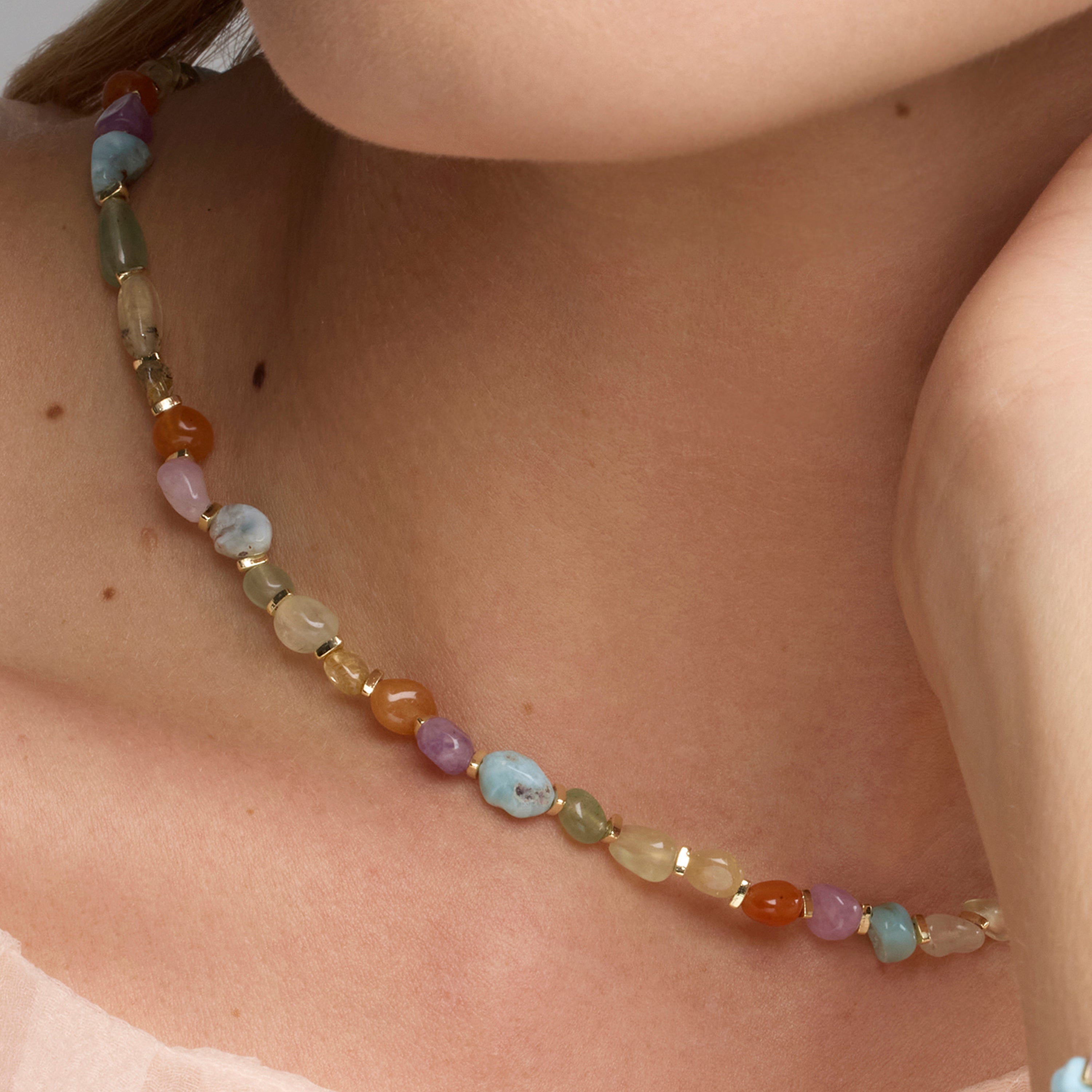 Collar Terma of Multicolor Natural Stone finished in 18k yellow gold