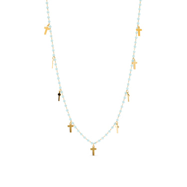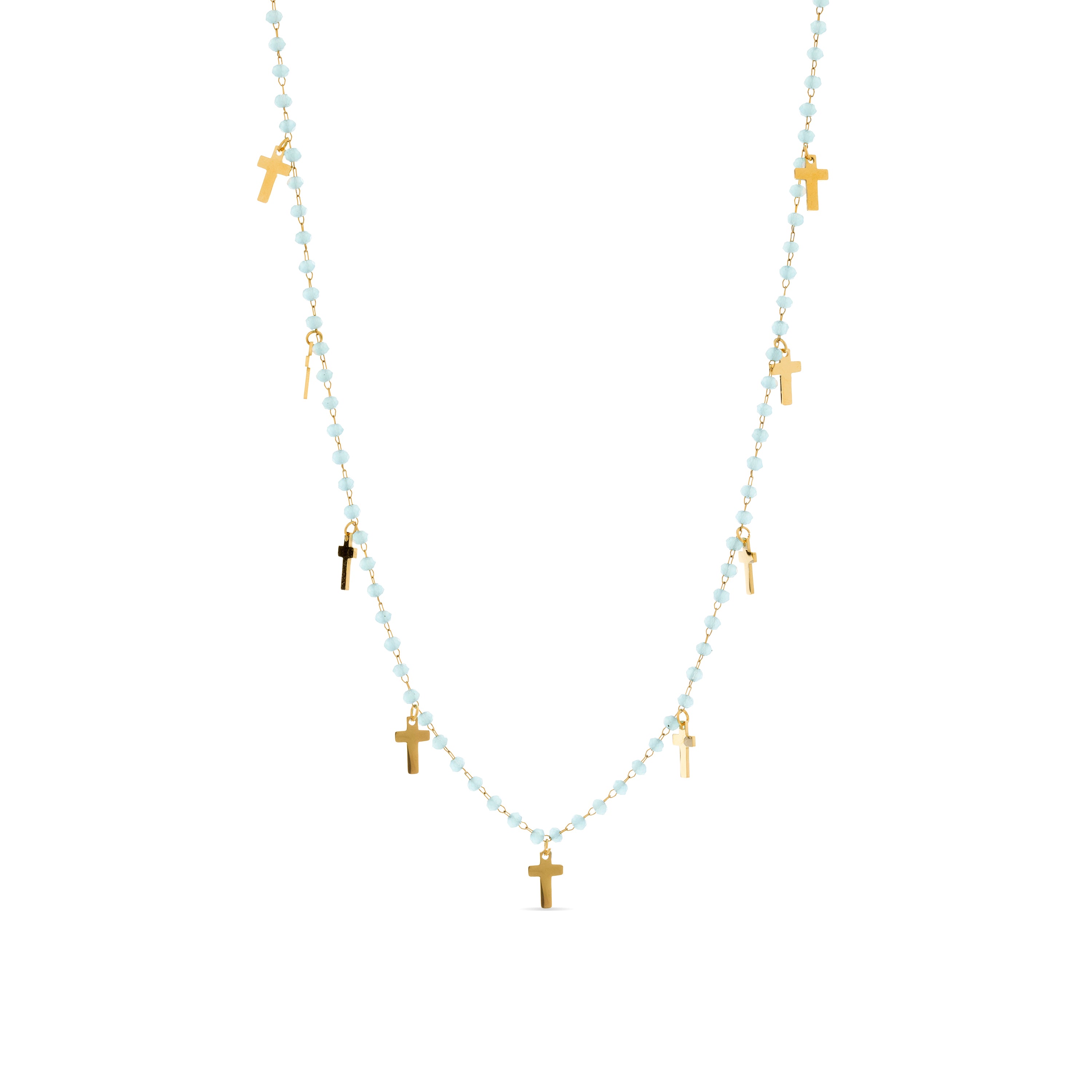 Blue Crystal Necklace finished in 18K yellow gold - Dersu