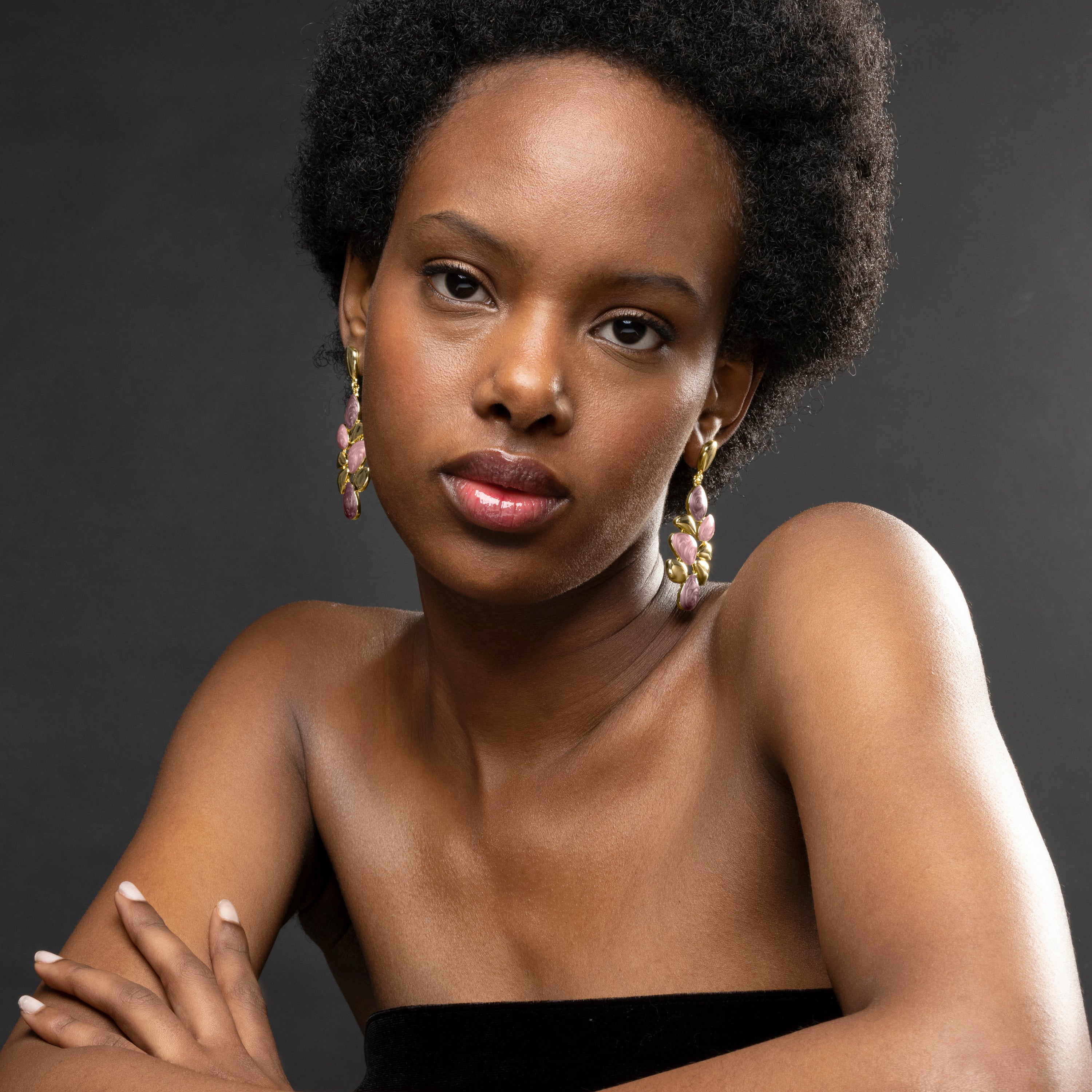 "Nortul Violet Resin Earrings finished in 18K yellow gold. Africa becomes the perfect line for women with personality, who are not afraid to take risks and wear pieces with their own character."
