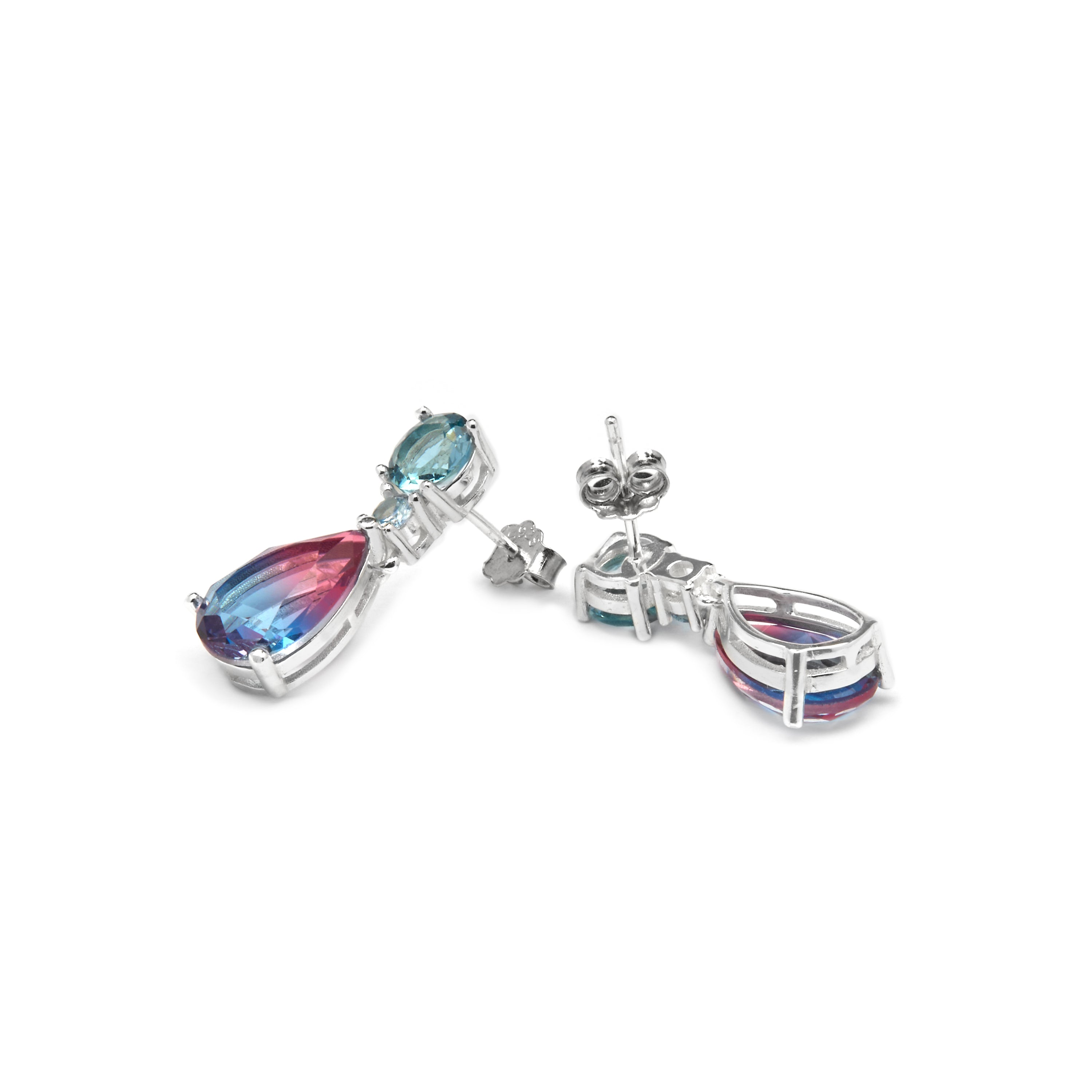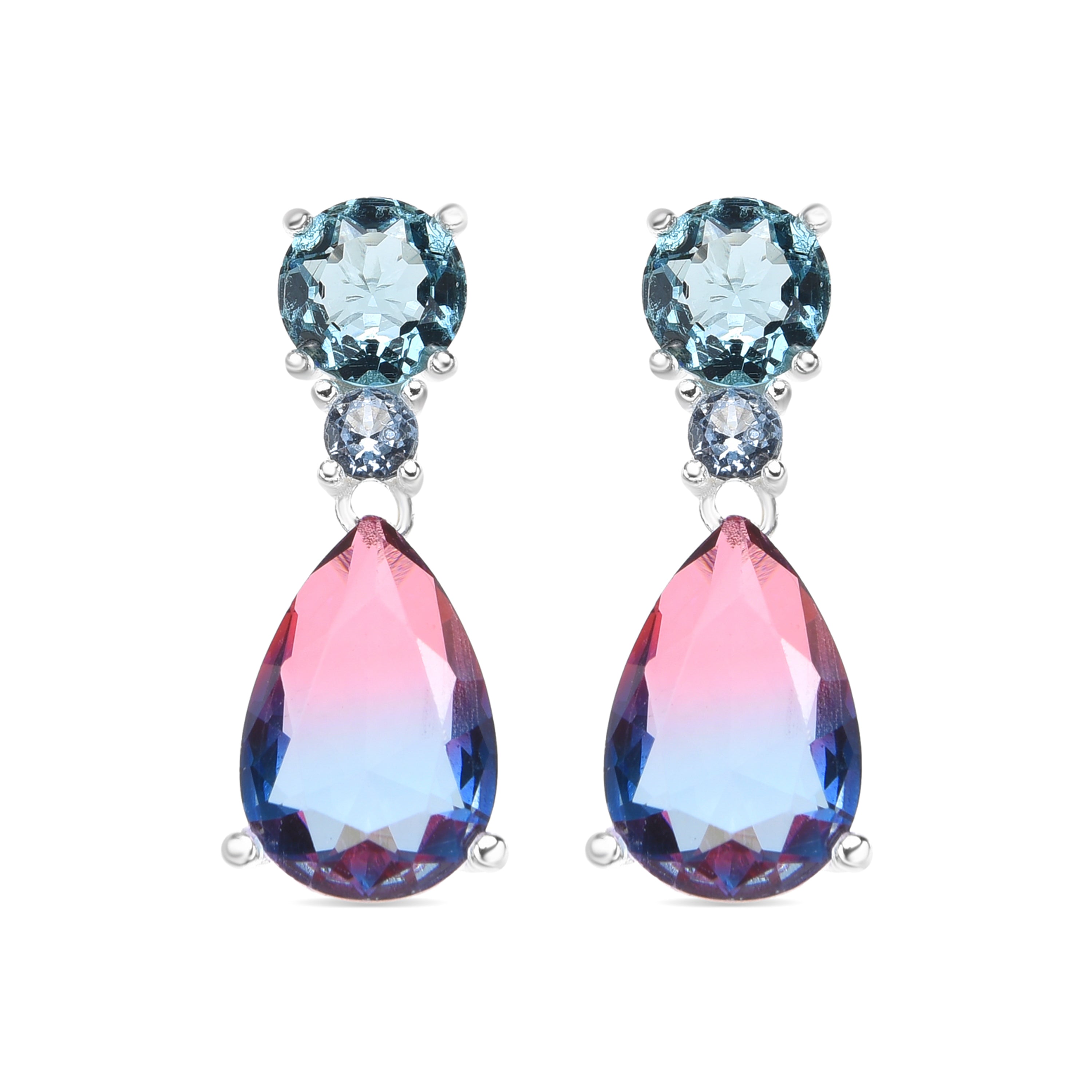 925 Sterling Silver Earrings with Blue Hydrothermal Quartz Gradient Rhodium Finish - Koarg