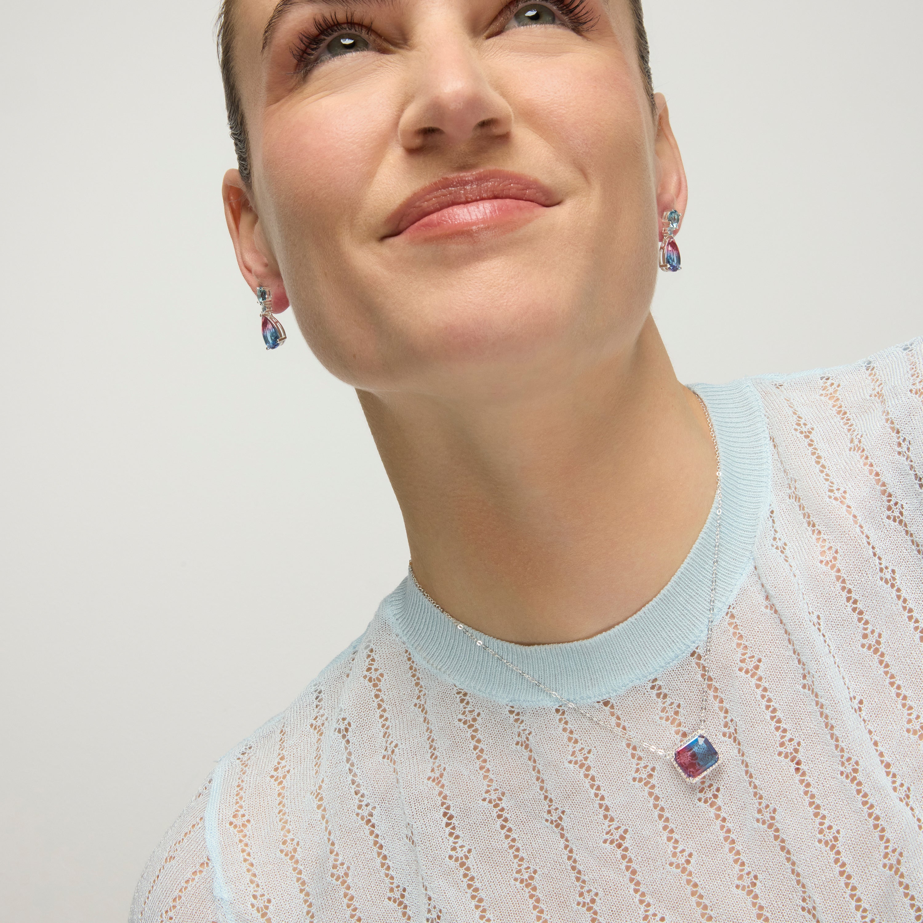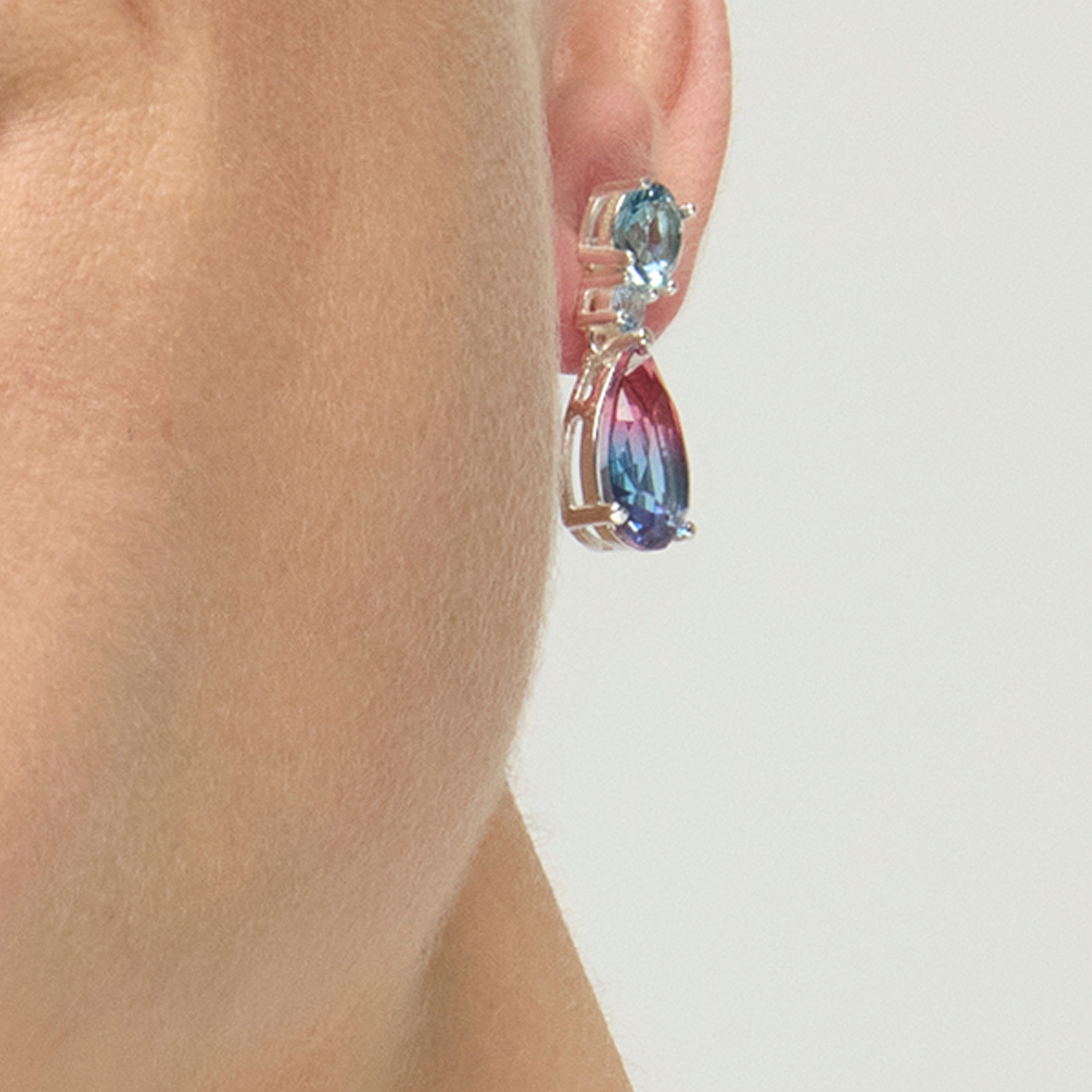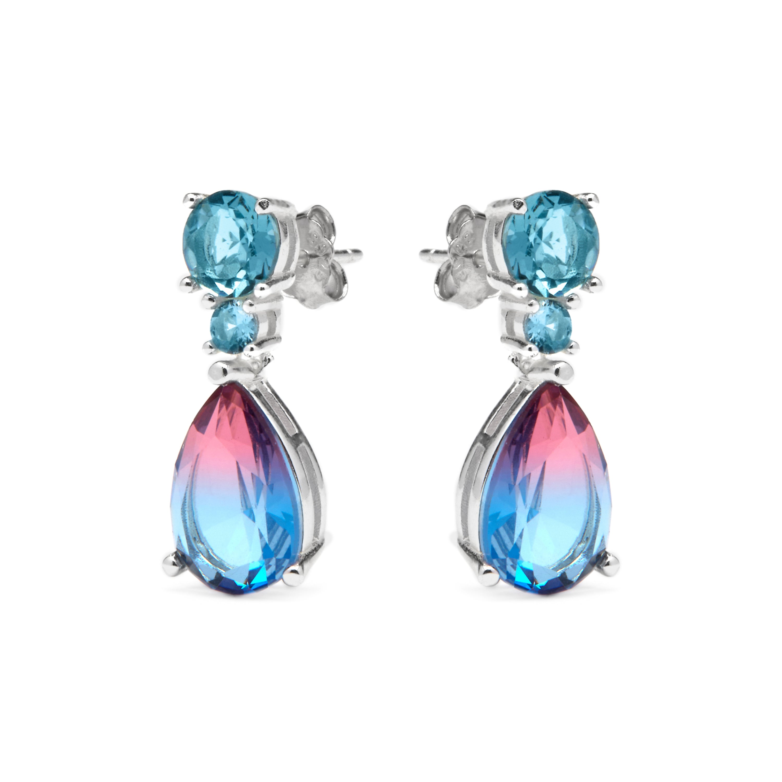 Koarg Earrings in 925 Sterling Silver and Blue Hydrothermal Quartz with Rhodium Finish