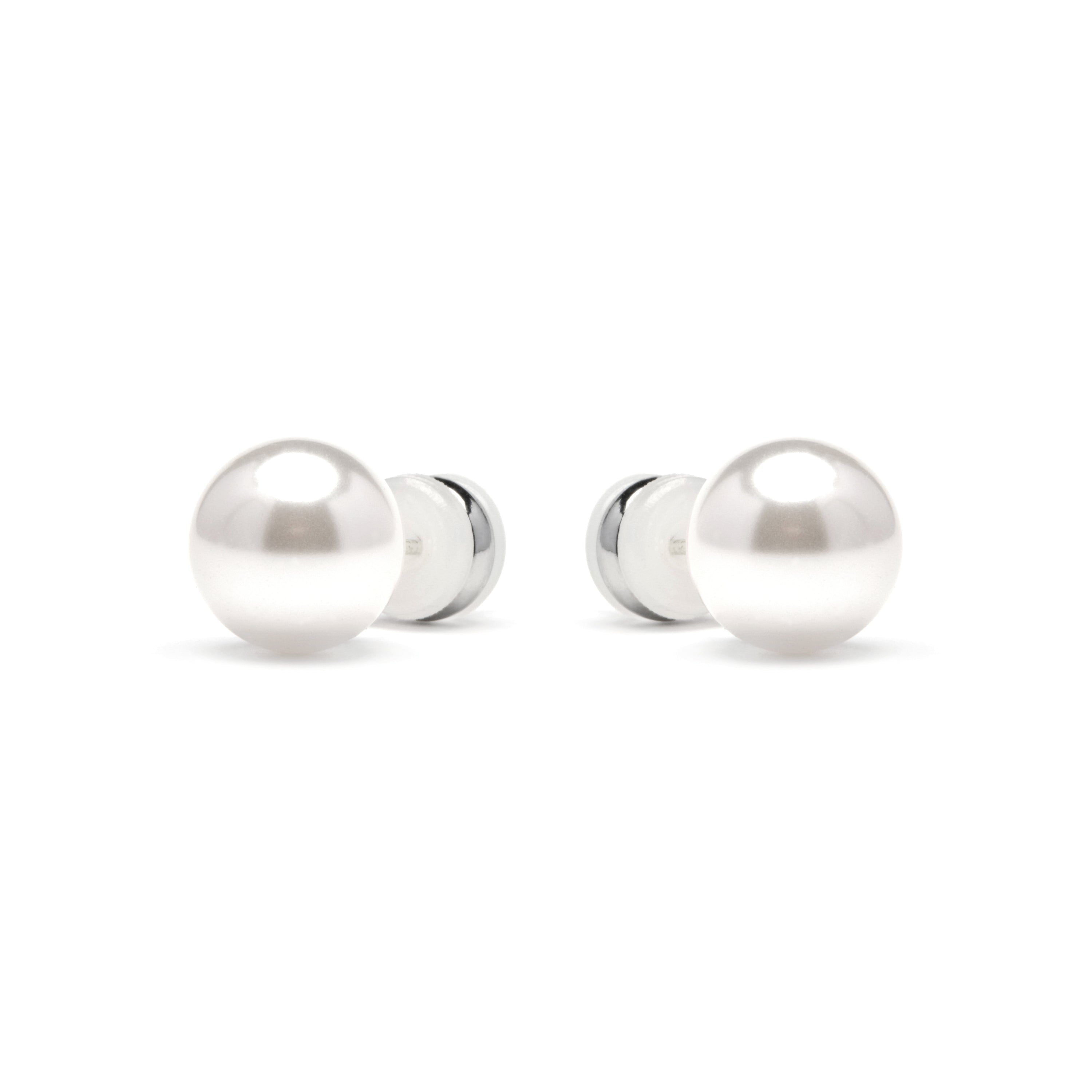 Wasai Earrings with White Pearl silver finish. Essential embodies refined simplicity, timeless pieces with soft lines and the added sparkle of cubic zirconia. Unpretentious basic jewelry that is perfect for everyday wear, but can also work for special occasions.