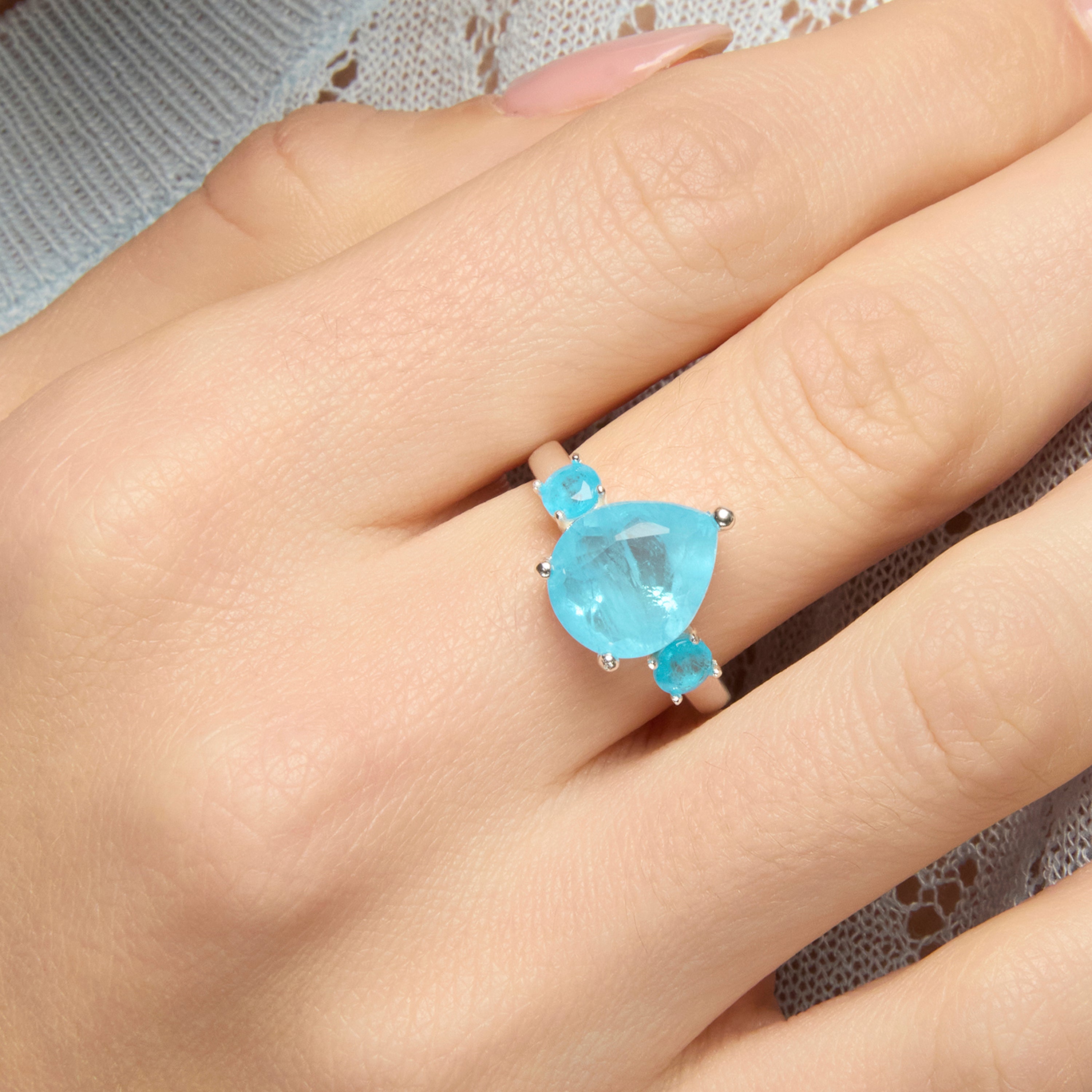 Larec Ring in 925 Sterling Silver and Hydrothermal Aquamarine with rhodium finish