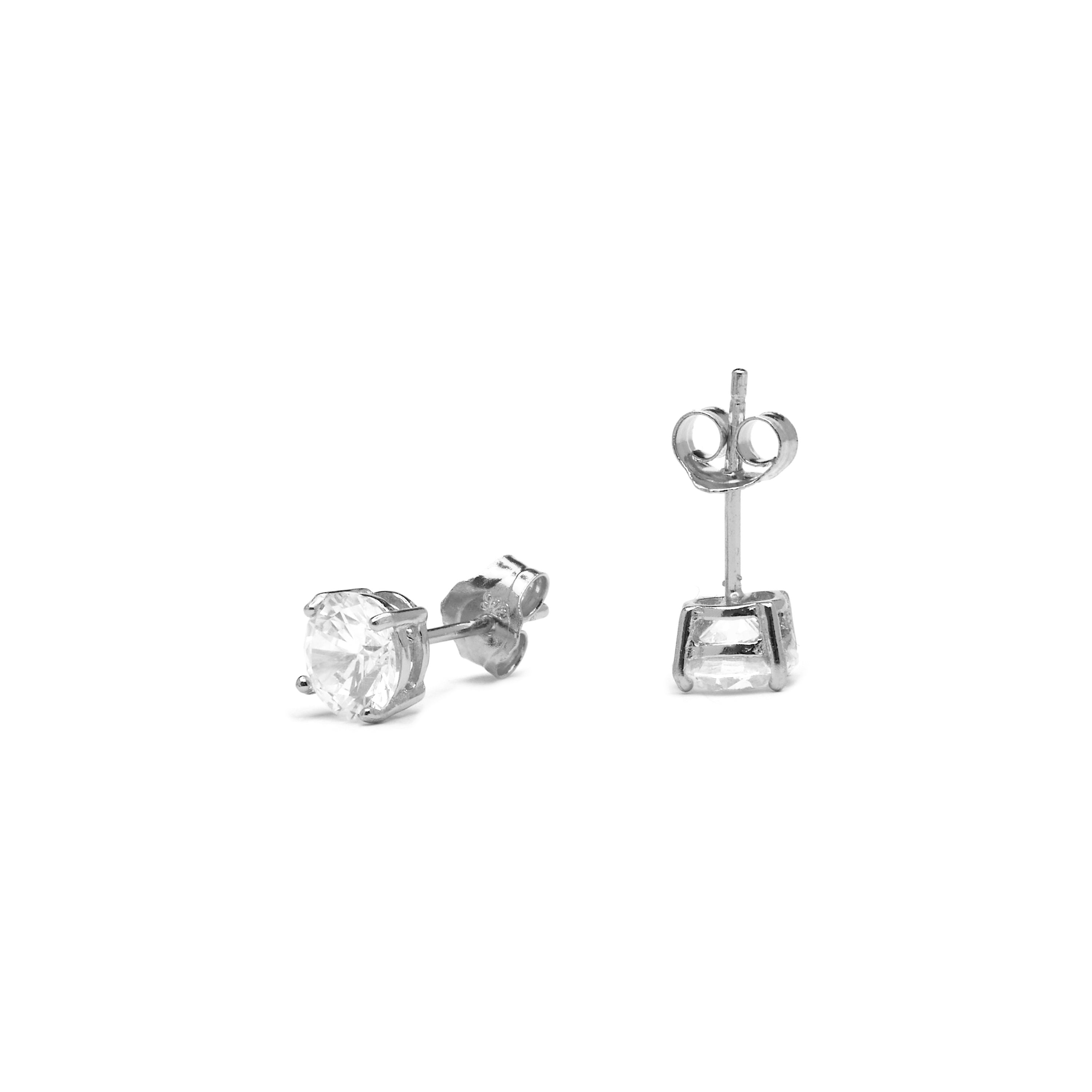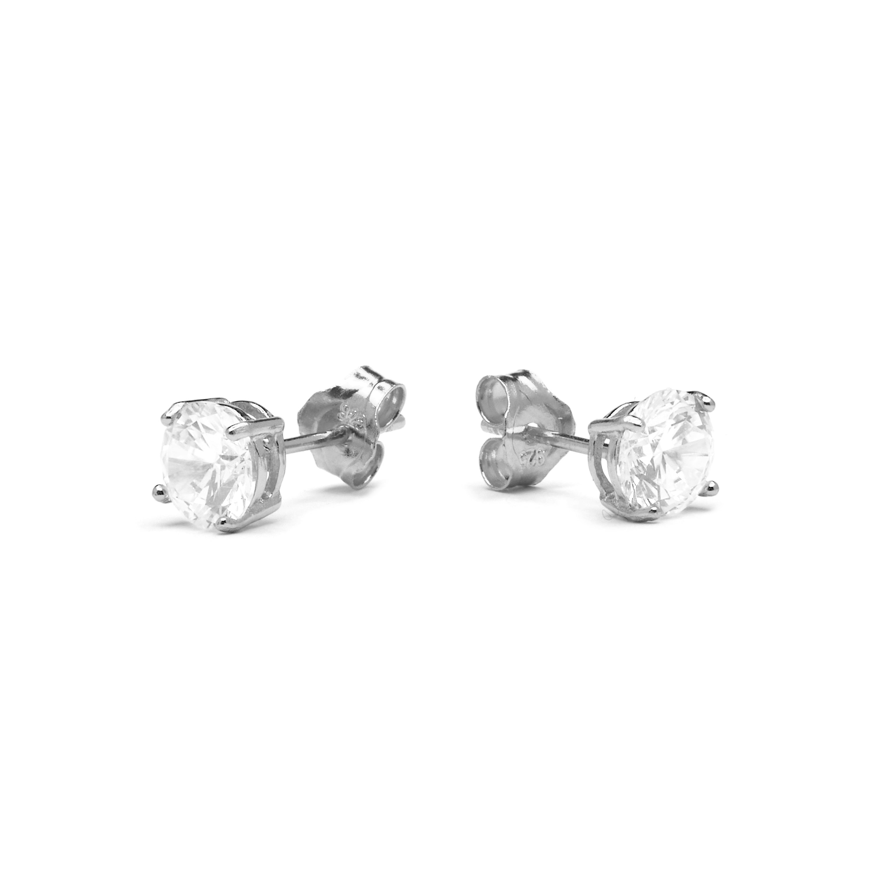 925 sterling silver 6mm earrings with cubic zirconia rhodium finish - Basic