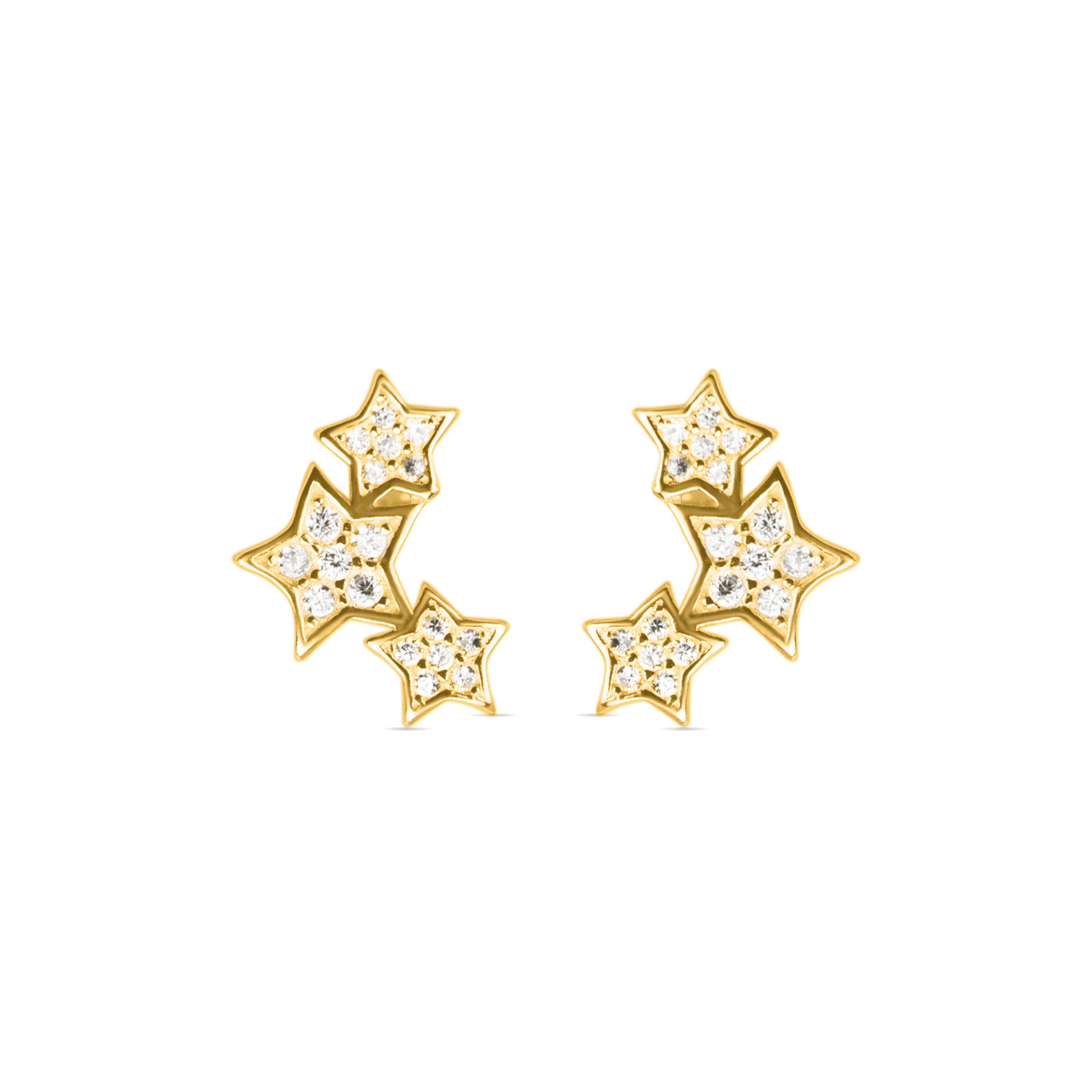 "925 sterling silver family earrings with sparkling cubic zirconia and finished with 18-carat yellow gold plating. Make a wish is characterized by youthful designs, full of meaning and color, original yet discreet, aiming to become small amulets."