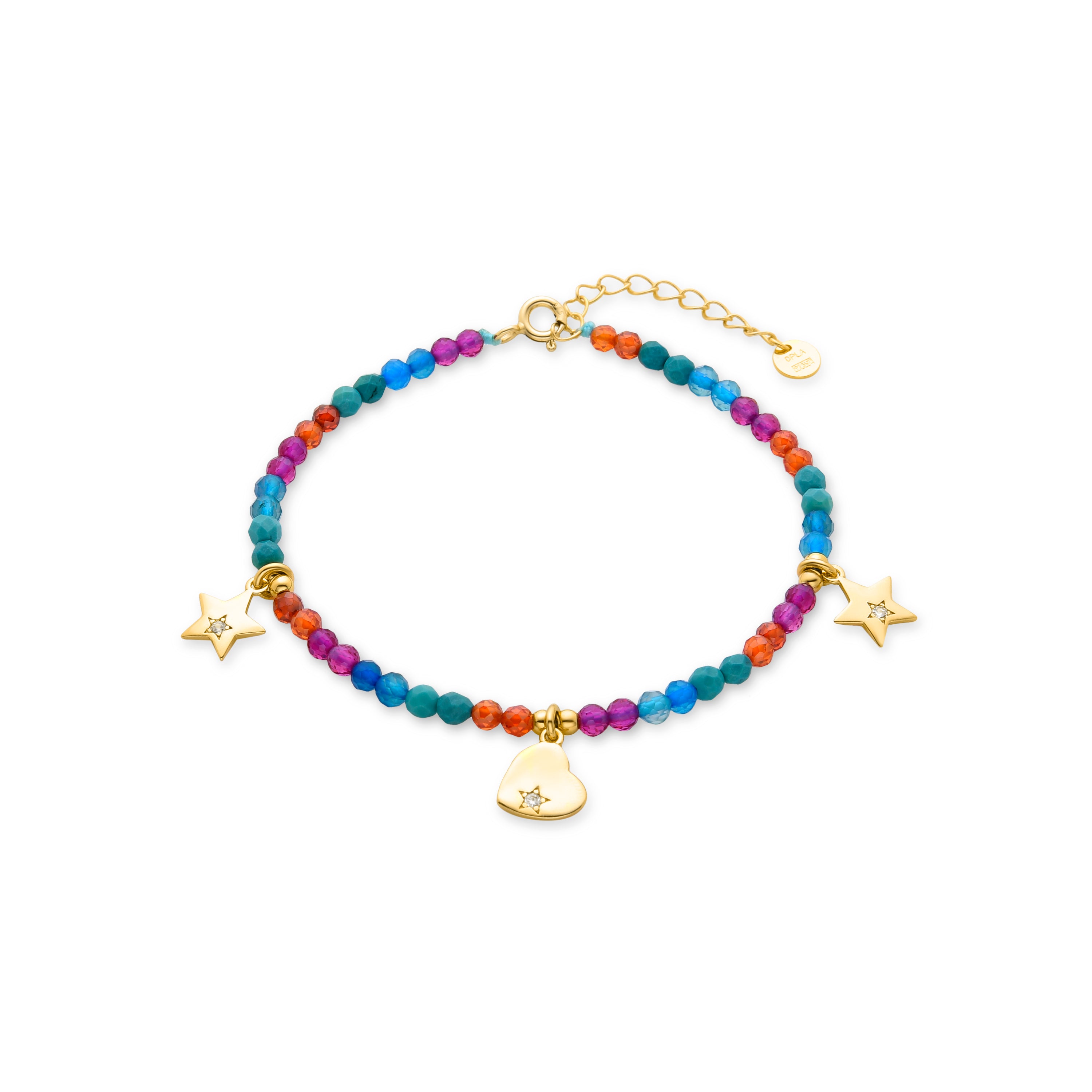 Sten bracelet with metal beads and a 925 sterling silver clasp finished in 18K yellow gold. Make a wish is characterized by youthful designs, full of meaning and color, original yet discreet, aiming to become small amulets.