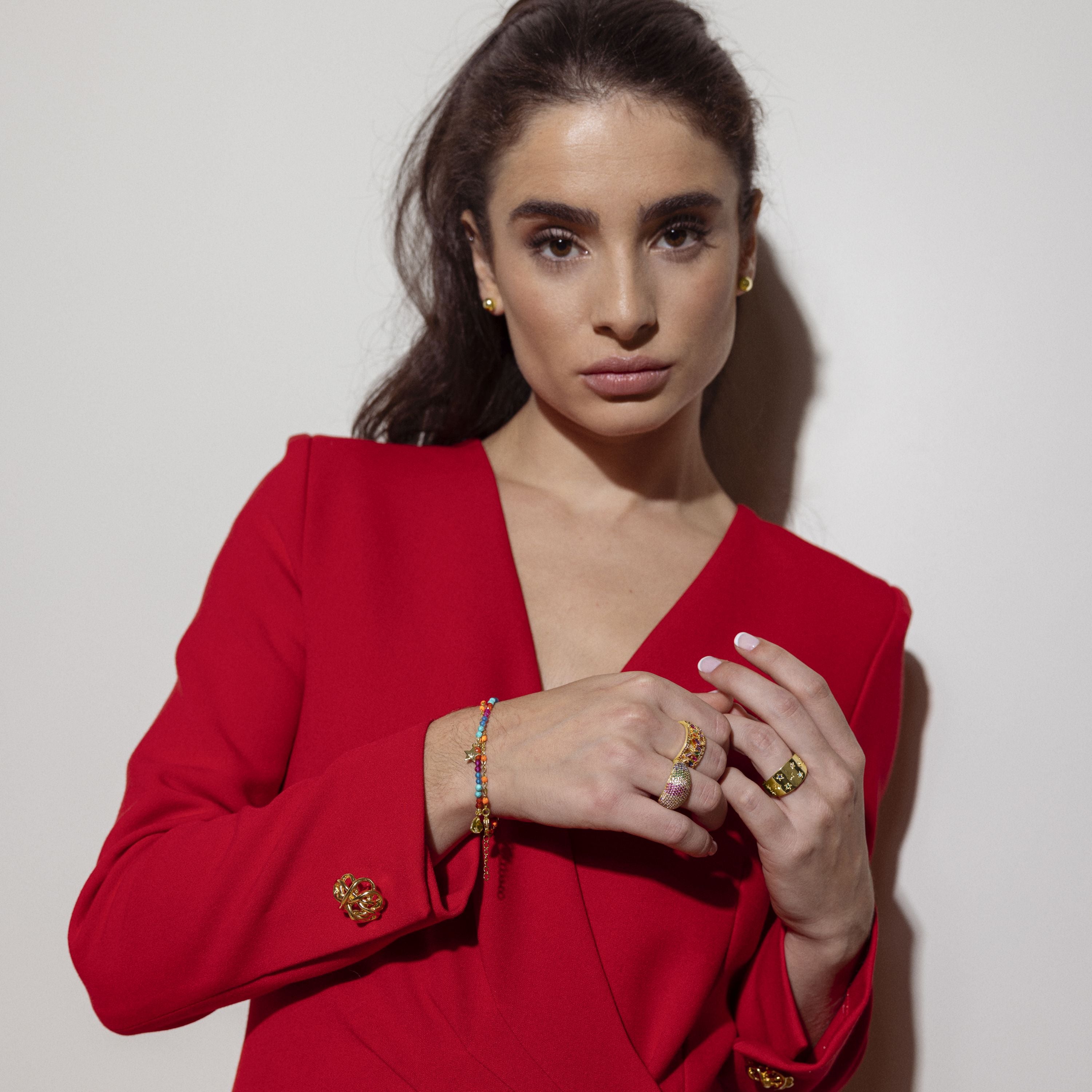 925 Sterling Silver Bracelet with Multicolor Crystal finished in 18K Yellow Gold - Sten