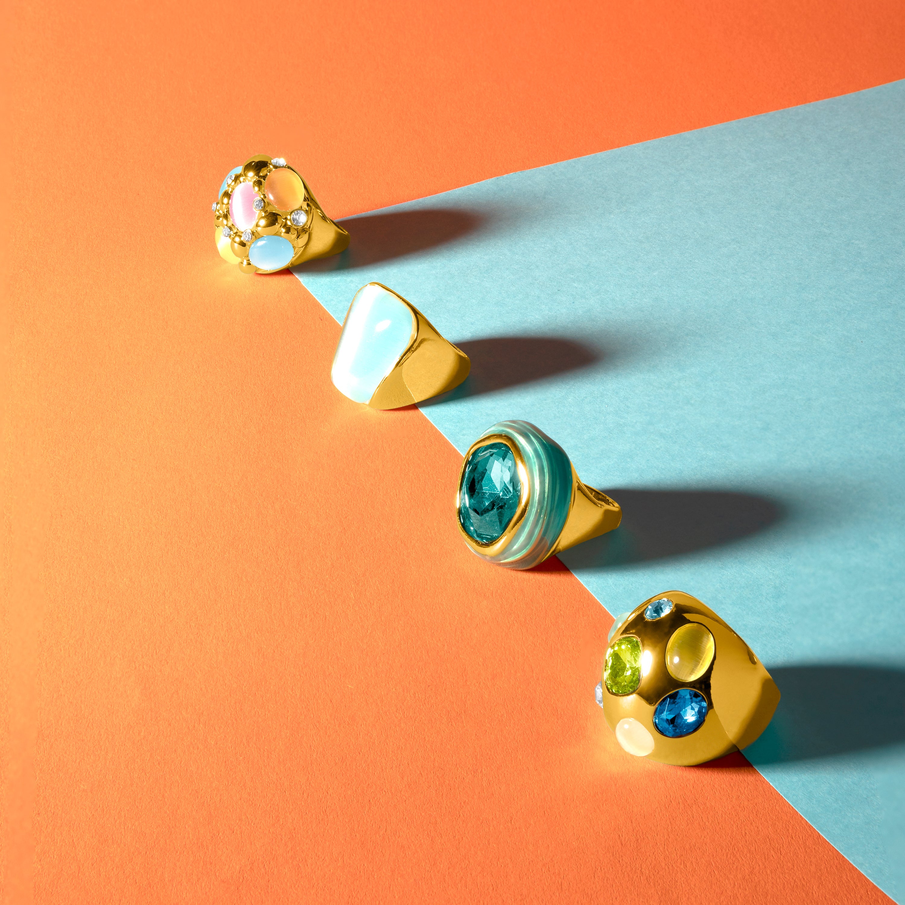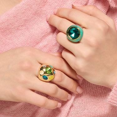 Alik Multicolor Crystal Ring with 18k Yellow Gold Finish