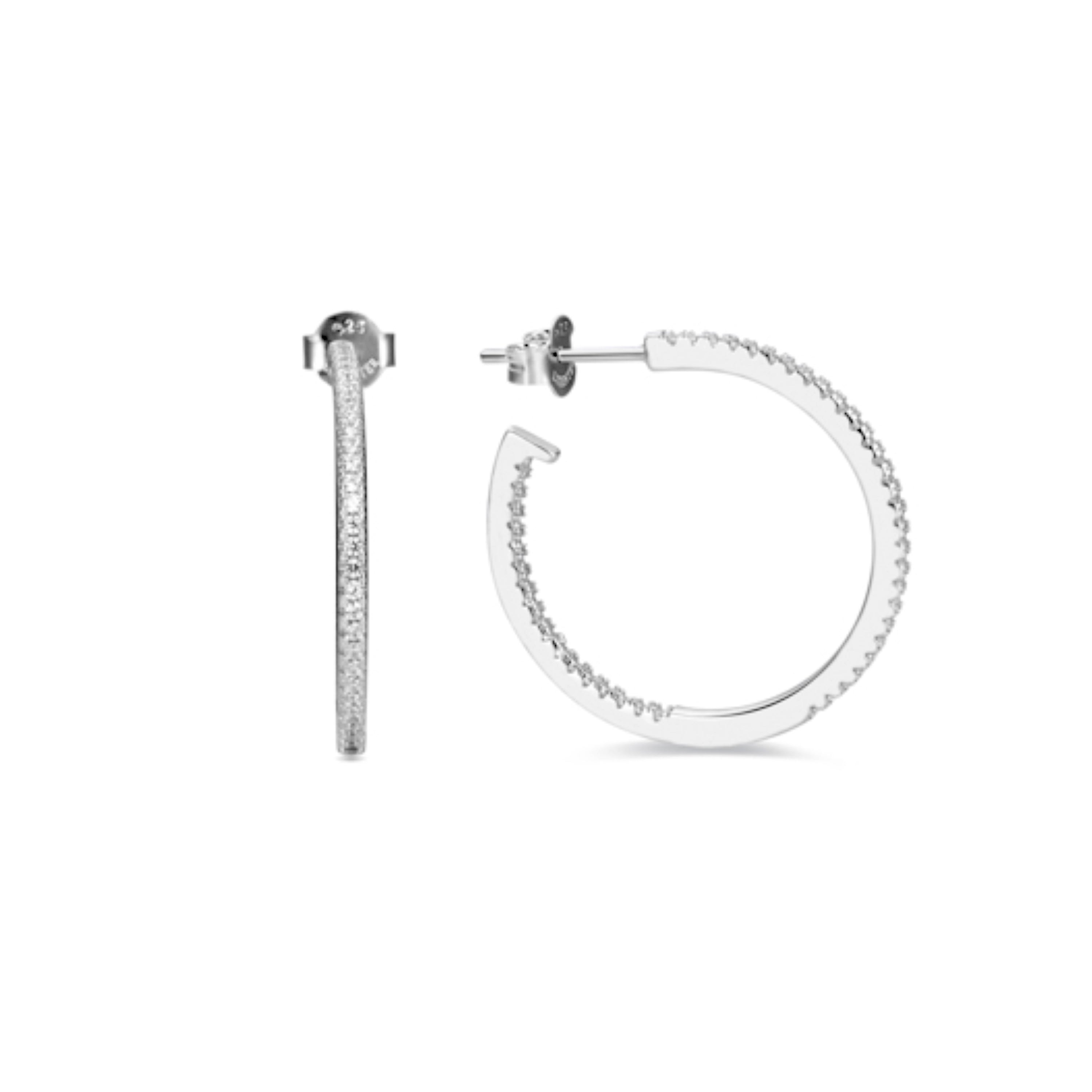 24mm Earrings of 925 Sterling Silver with Bright Cubic Zirconia Rhodium Finish - Xoma