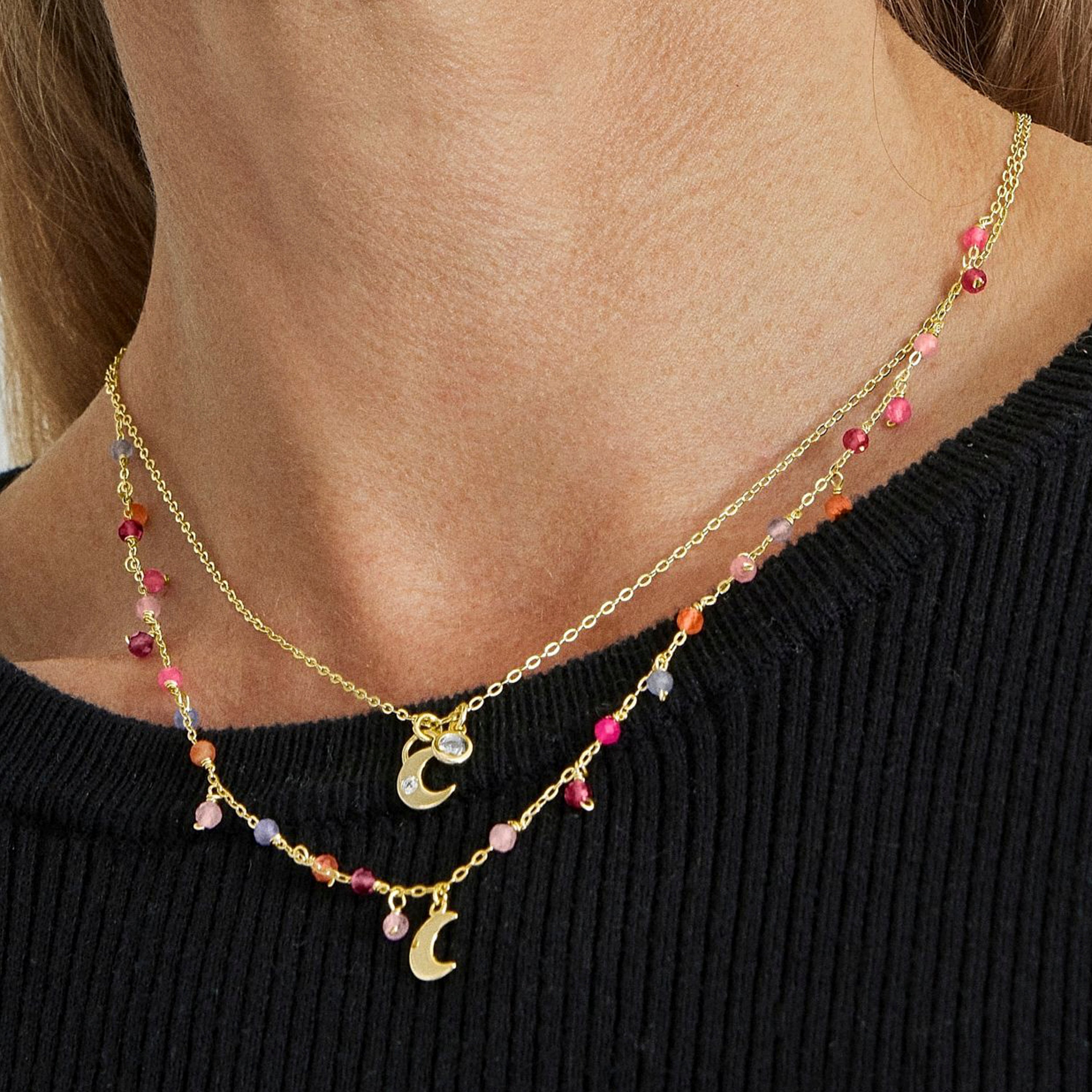 925 Sterling Silver Necklace with Multicolor Crystal finished in 18K Yellow Gold - Aiel