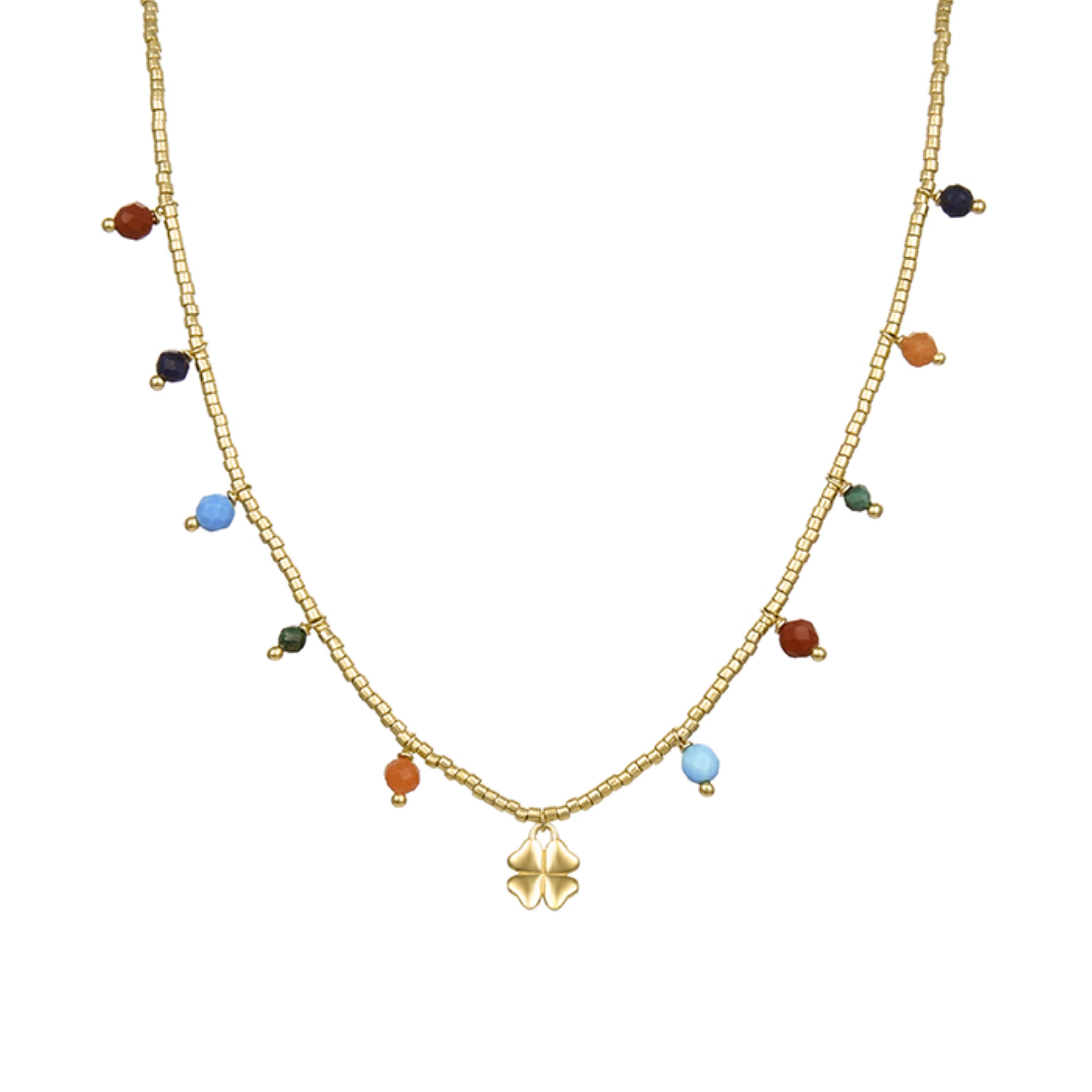 925 Sterling Silver Necklace with Multicolor Natural Stone finished in 18K yellow gold - Laila