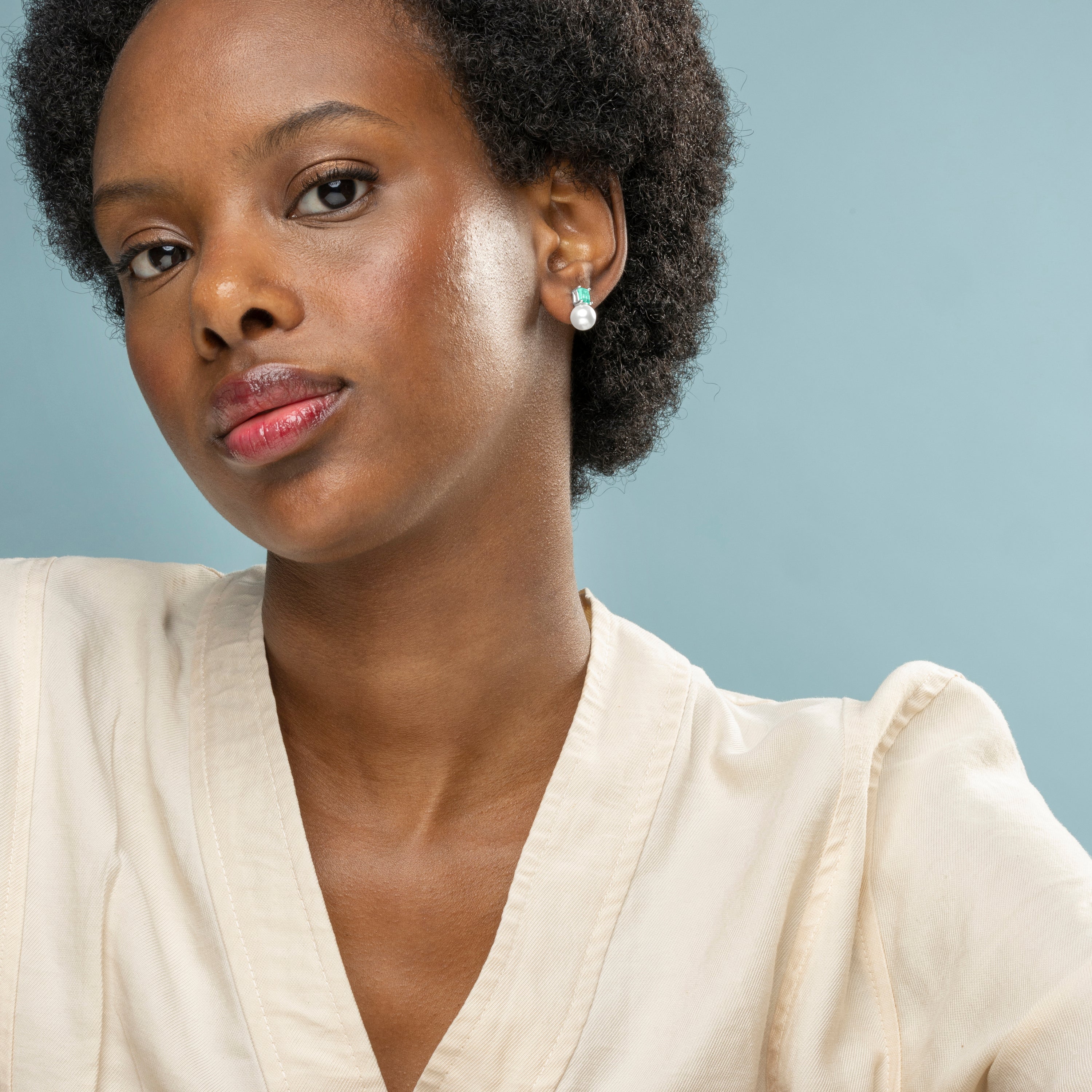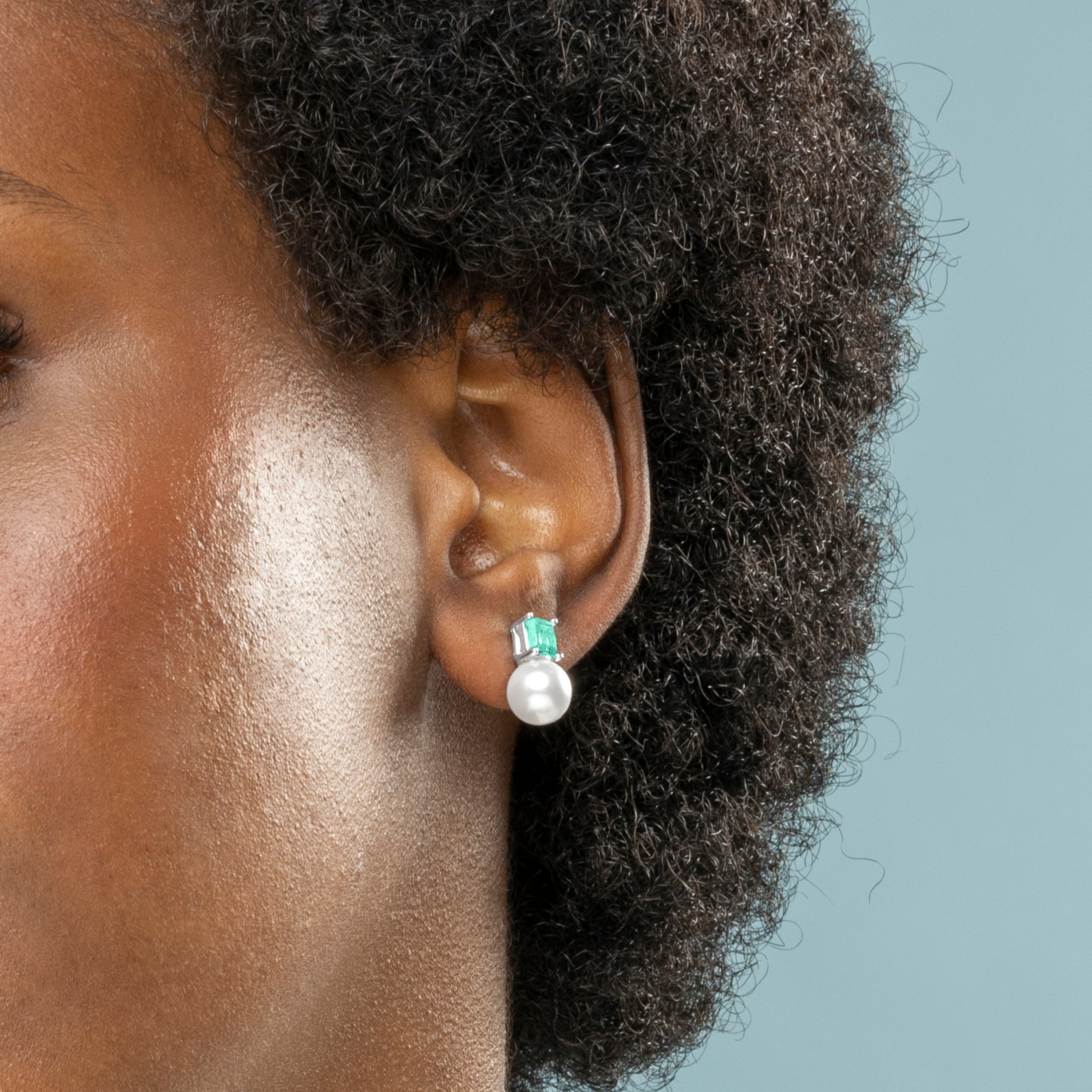 925 Sterling Silver Earrings with Emerald Zirconia finished in rhodium - Amvis