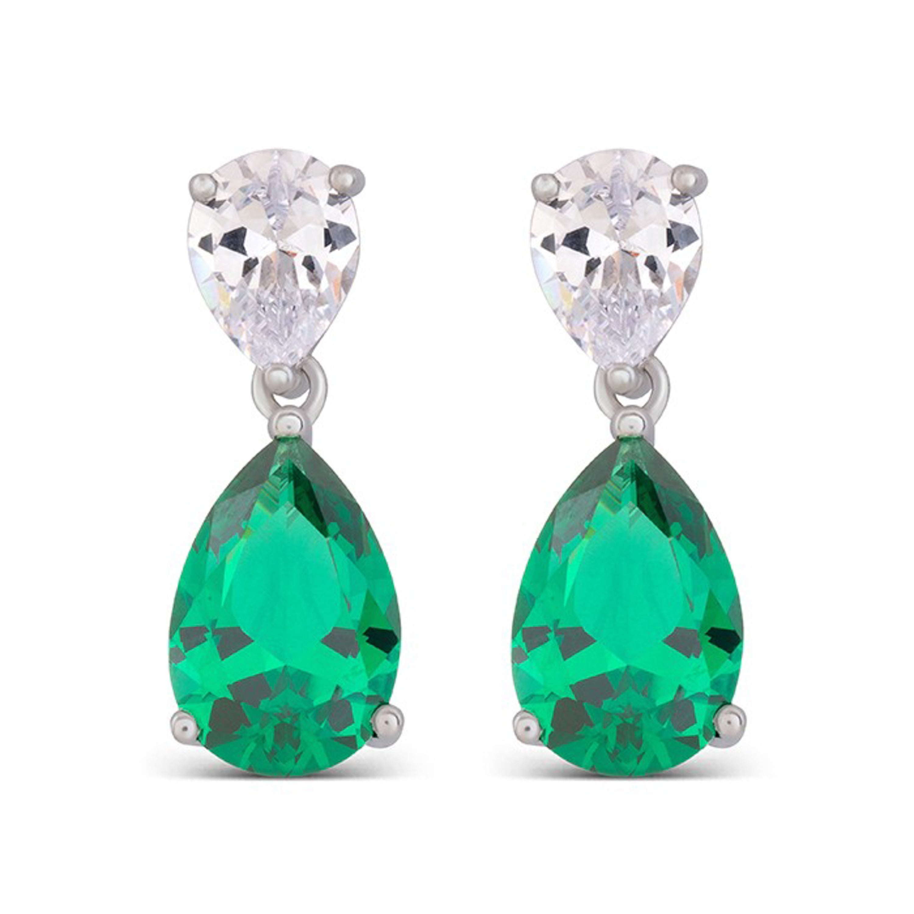 925 Sterling Silver Earrings with Emerald Zirconia finished in rhodium - Chenwa